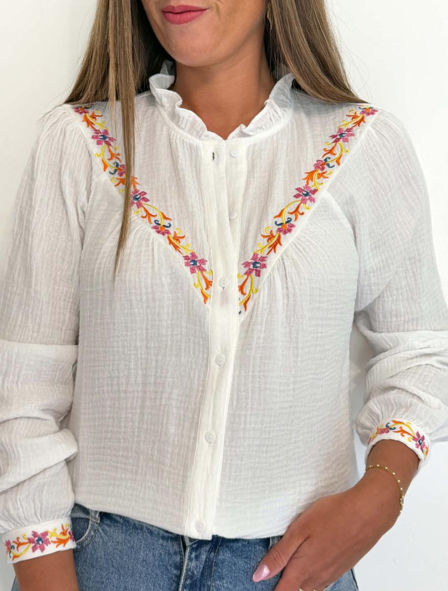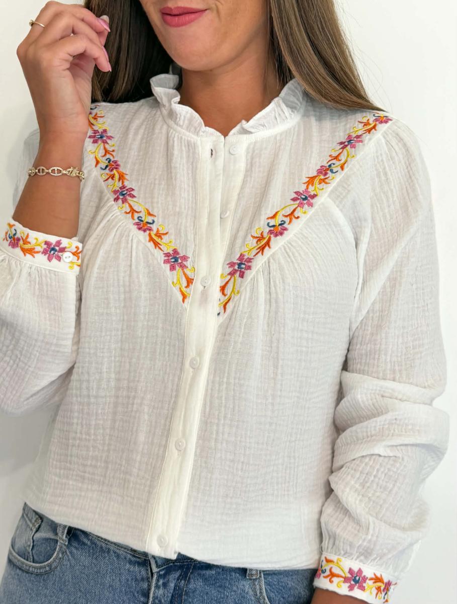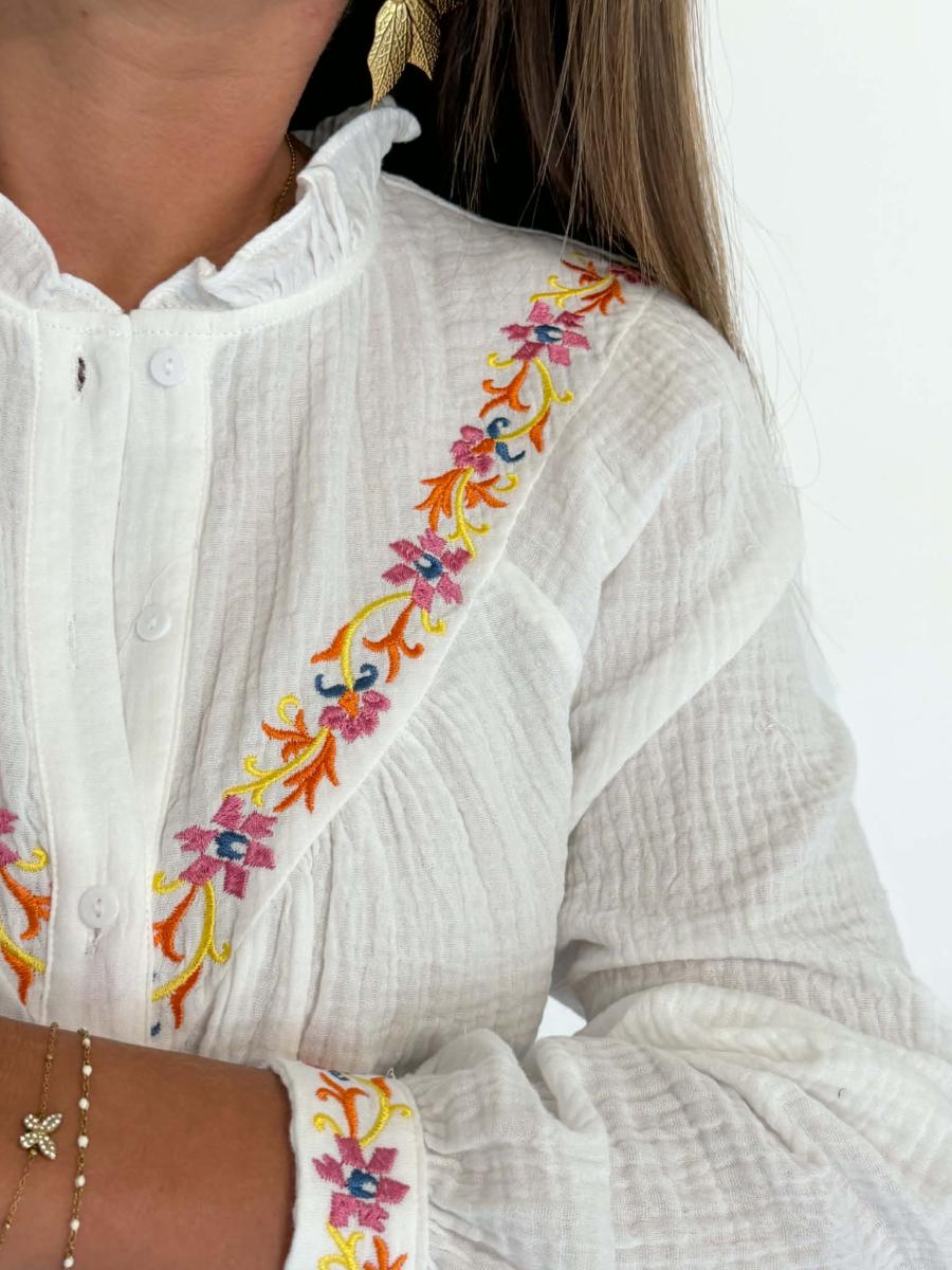 Détails brodés aux poignets et à l'avant.