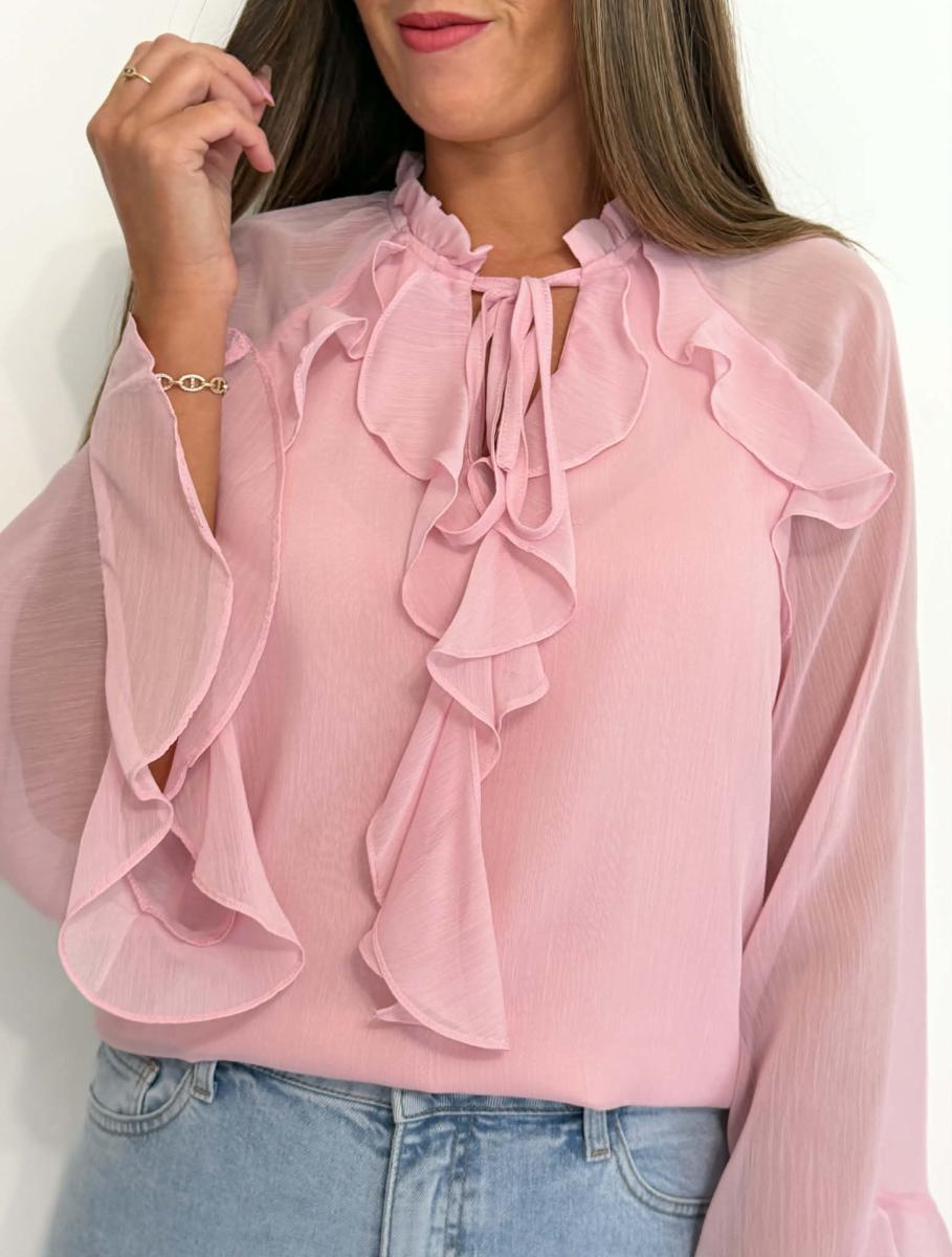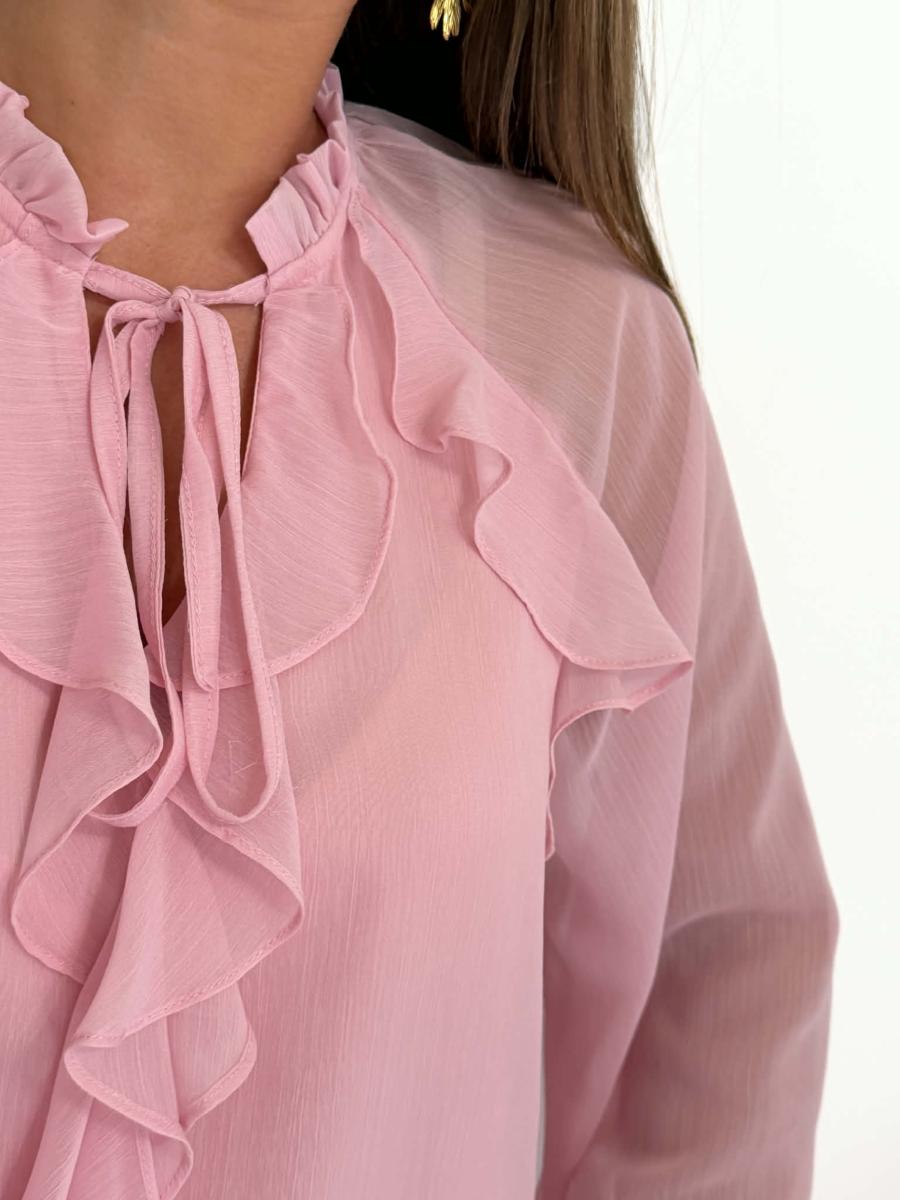 Blouse coloris rose.