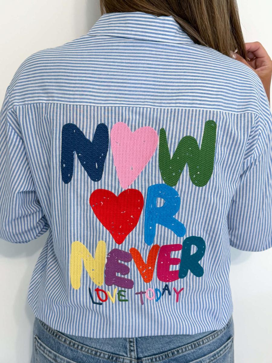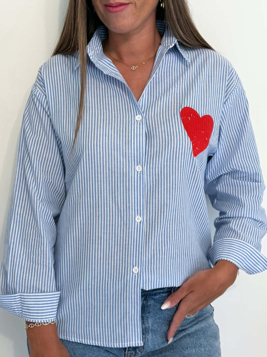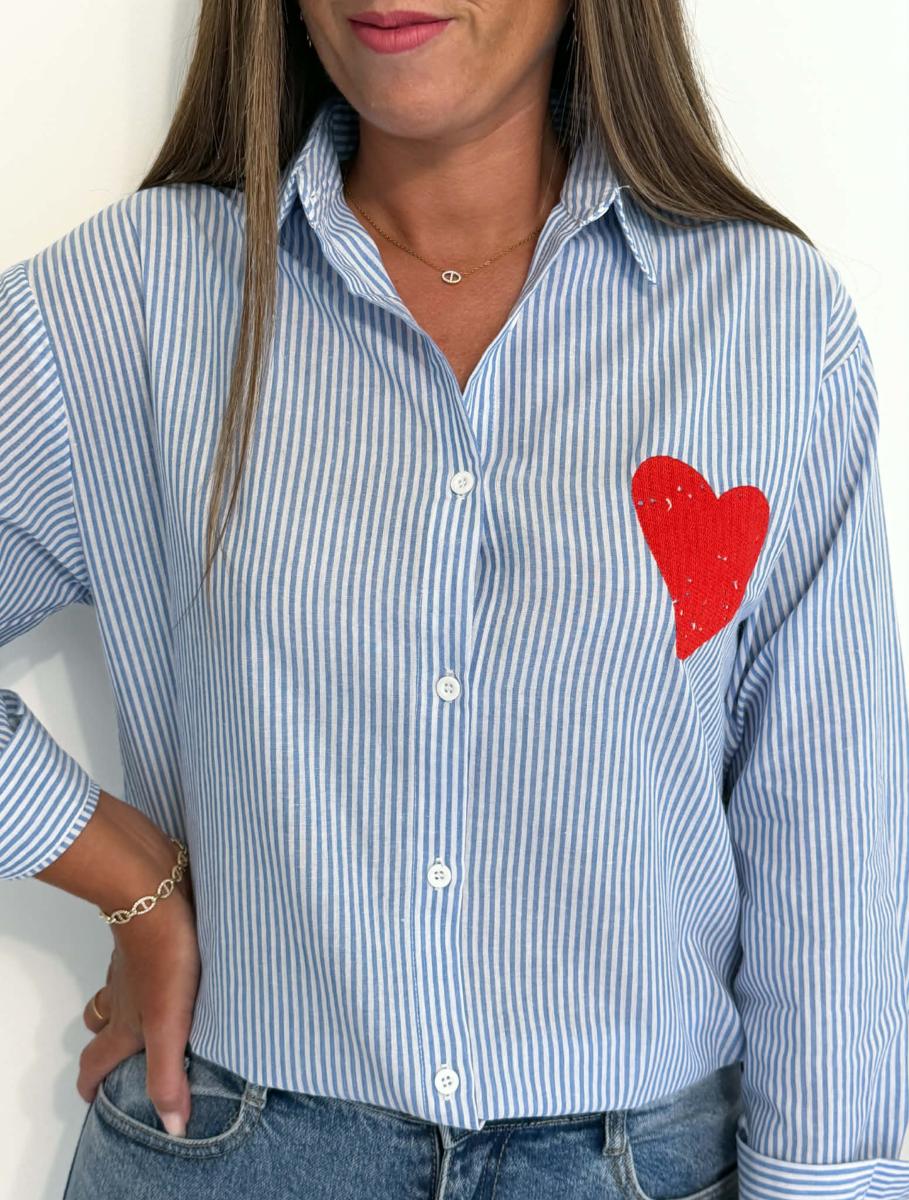 Chemise à rayures coloris bleu et blanc.