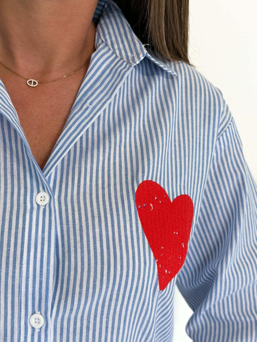 Cœur rouge sur la poitrine.