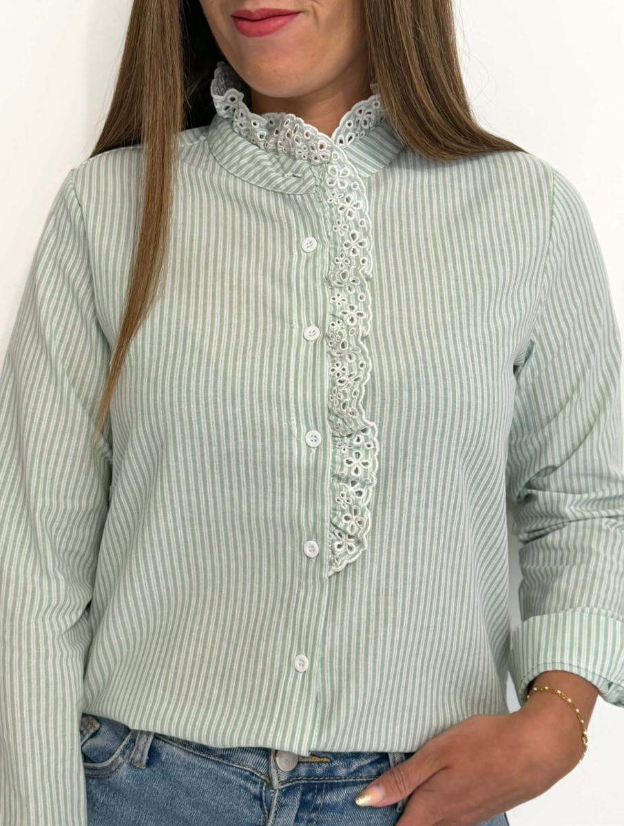 Chemise à fines rayures.