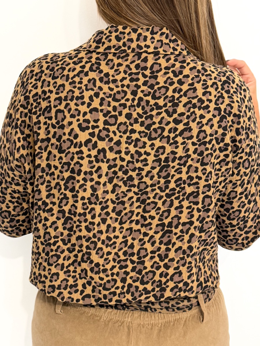- Chemise imprimé léopard sur fond chocolat en gaze de coton