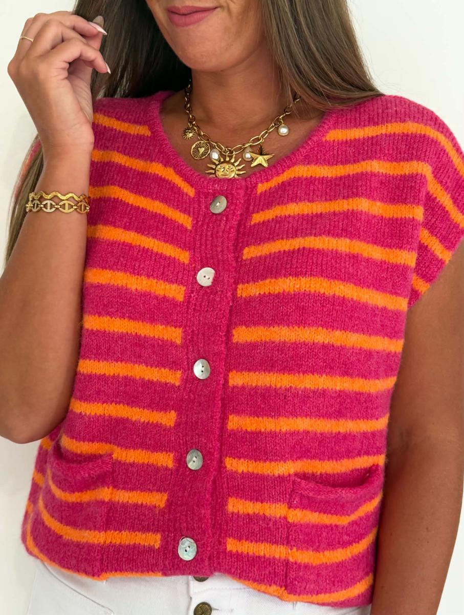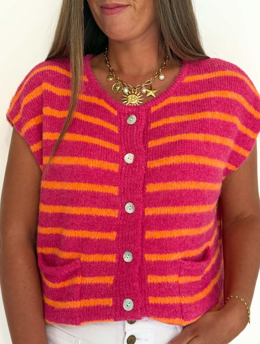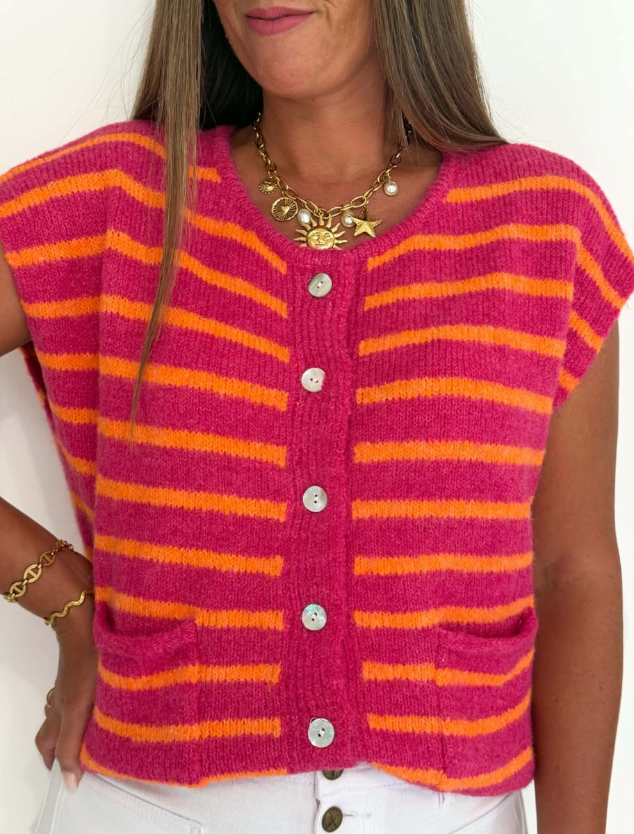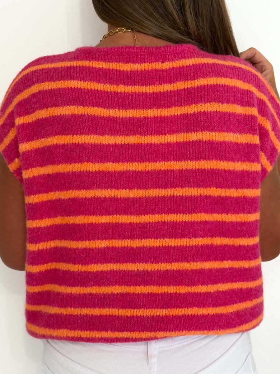 Rayures coloris fuchsia et orange.
