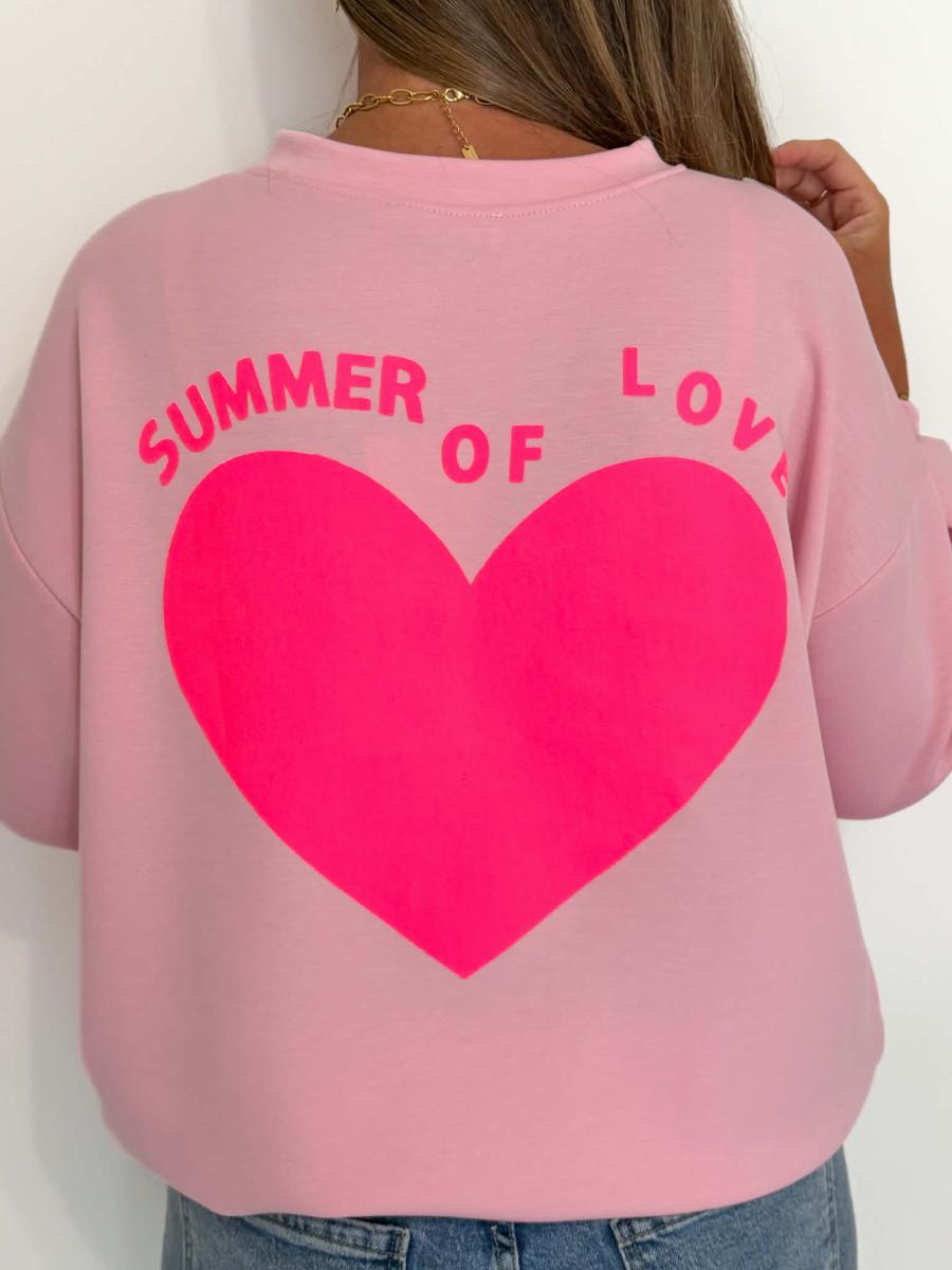 Cœur sur la poitrine et au dos avec inscription "Summer of love".