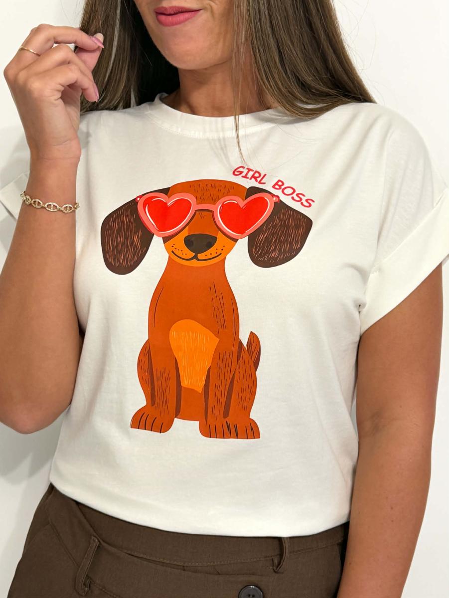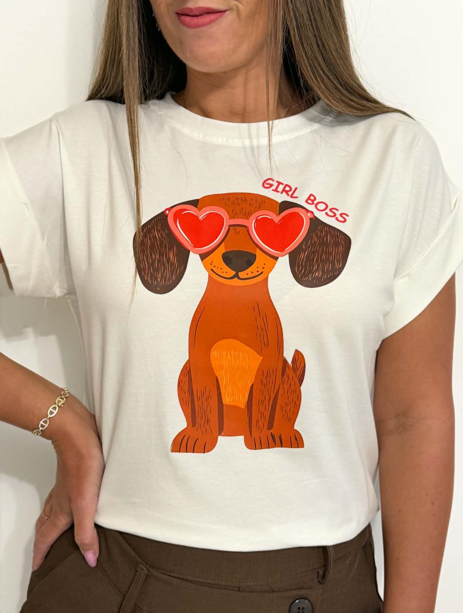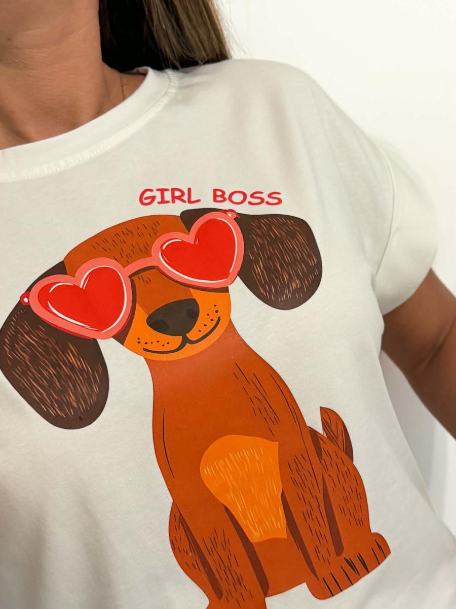Teckel et inscription "Girl boss" à l'avant.