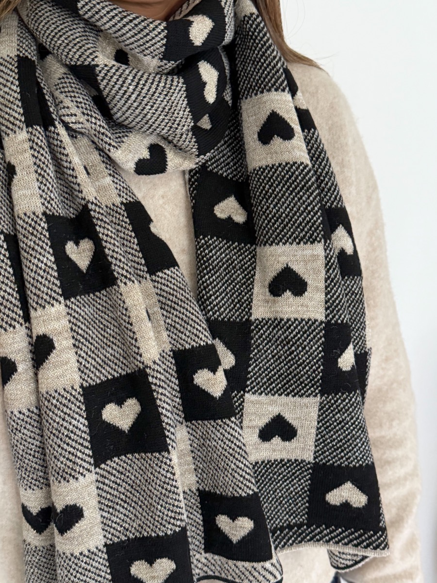 Echarpe cœurs à carreaux.