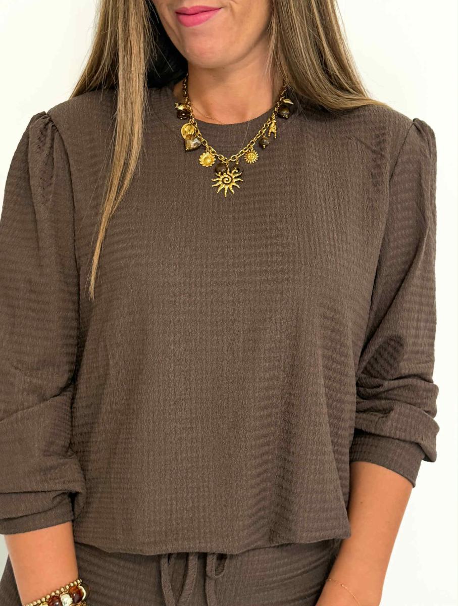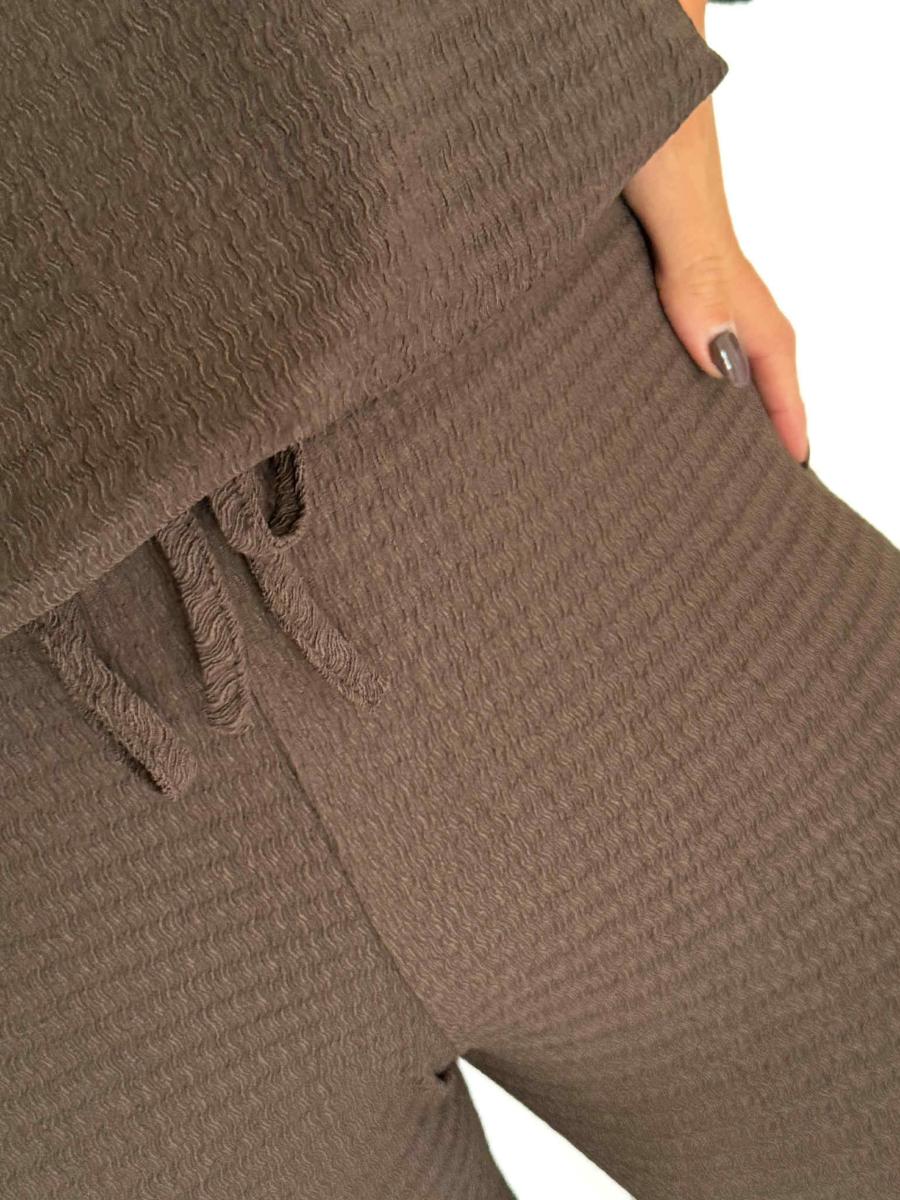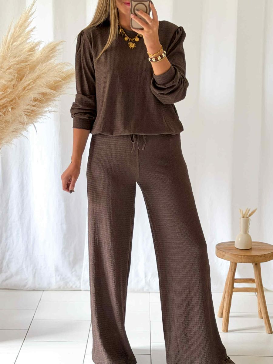 Ensemble pantalon et pull coloris chocolat.