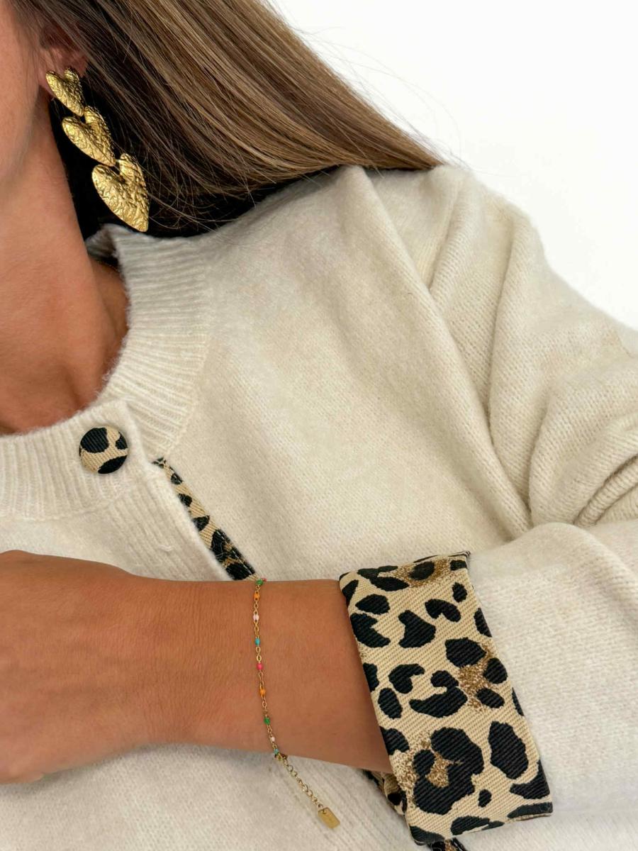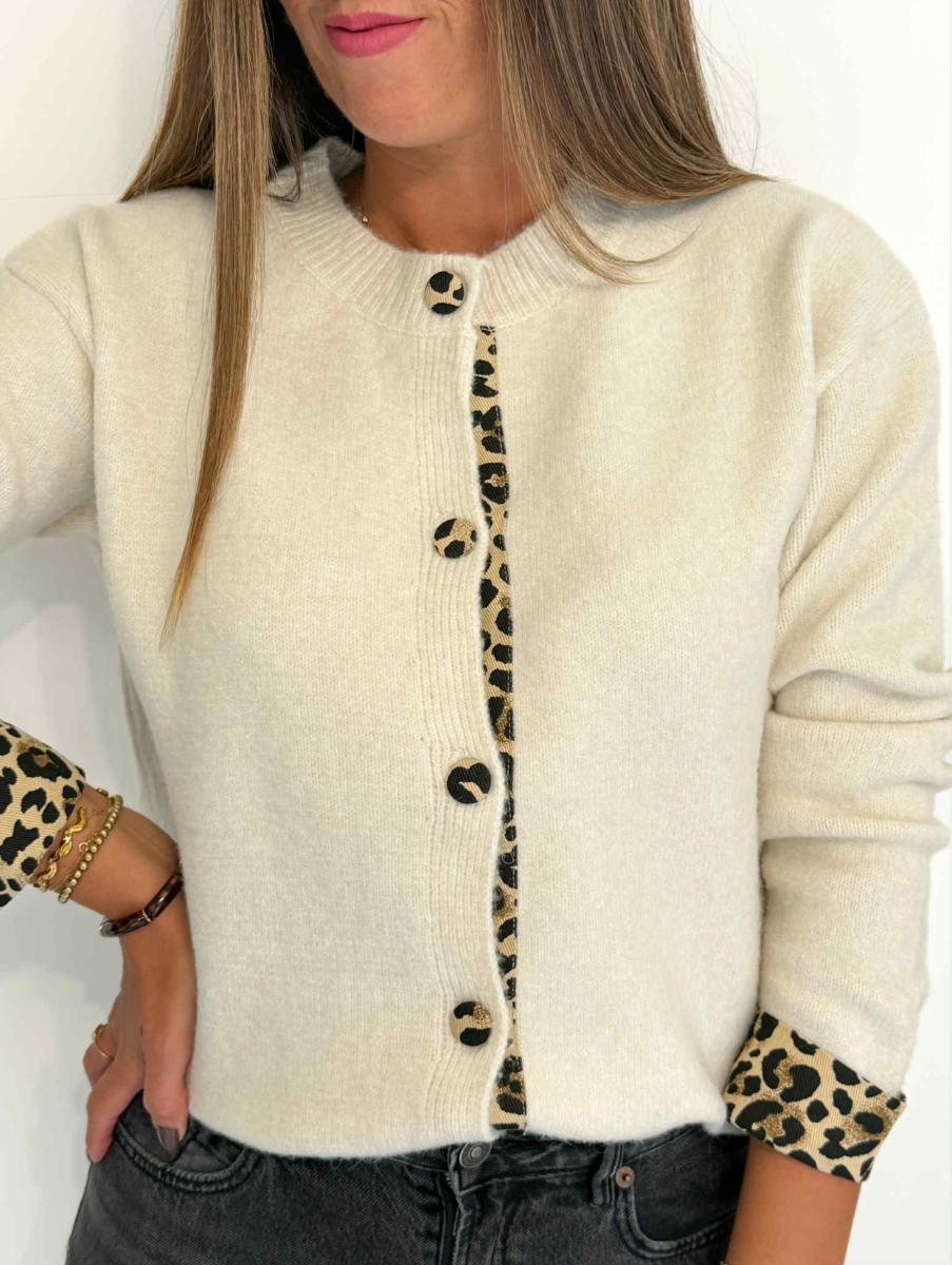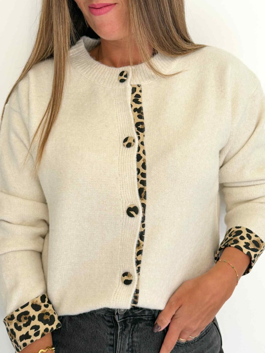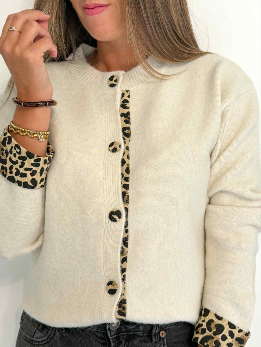 Poignets, bouton et bordure de la boutonnière imprimé léopard.