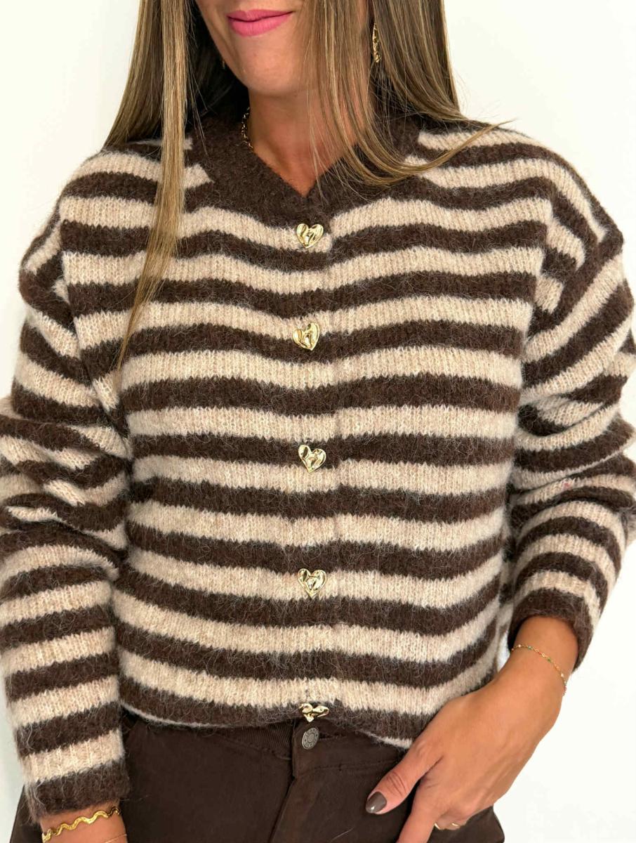 Boutonnière à l'avant avec boutons en cœur dorés.