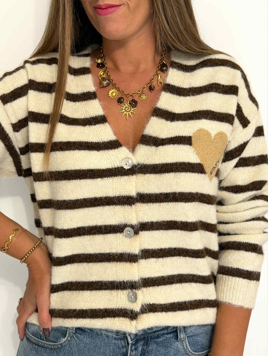 Cœur doré pailleté avec inscription "Amore" sur la poitrine.