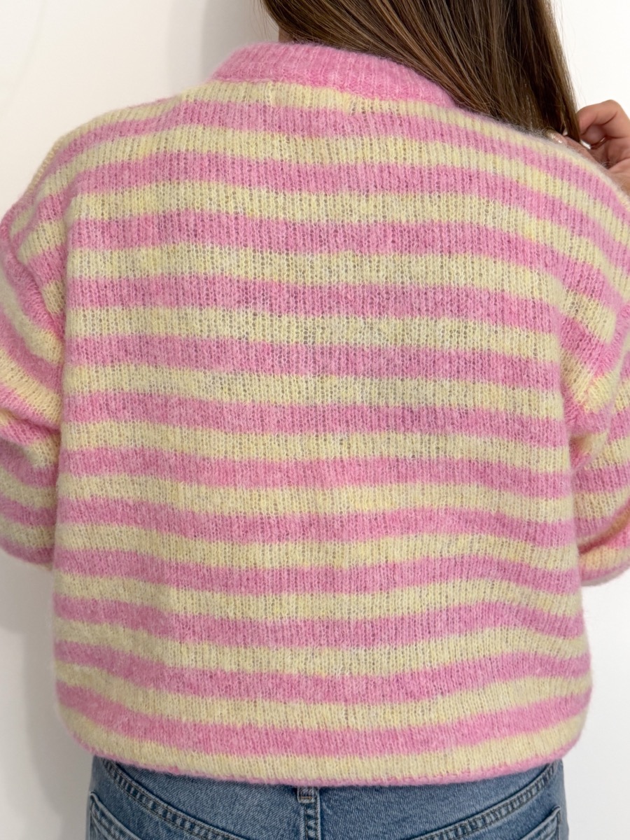 Gilet rayé coloris rose et jaune.