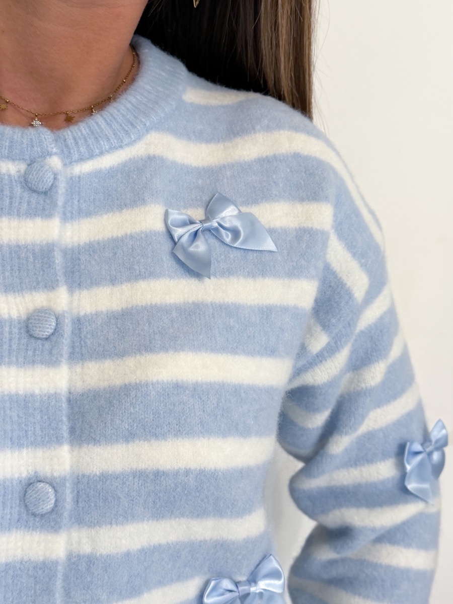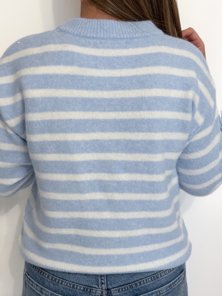 Gilet rayé coloris bleu et blanc.