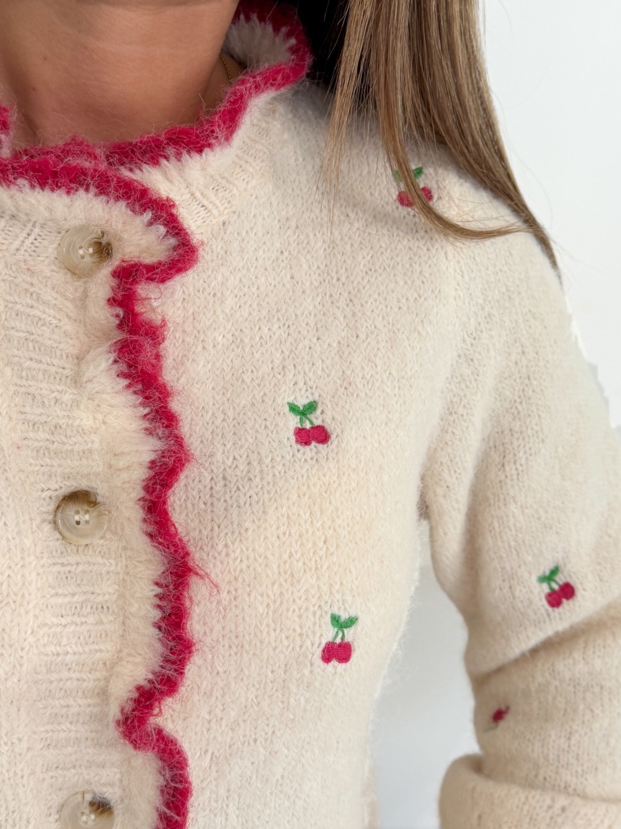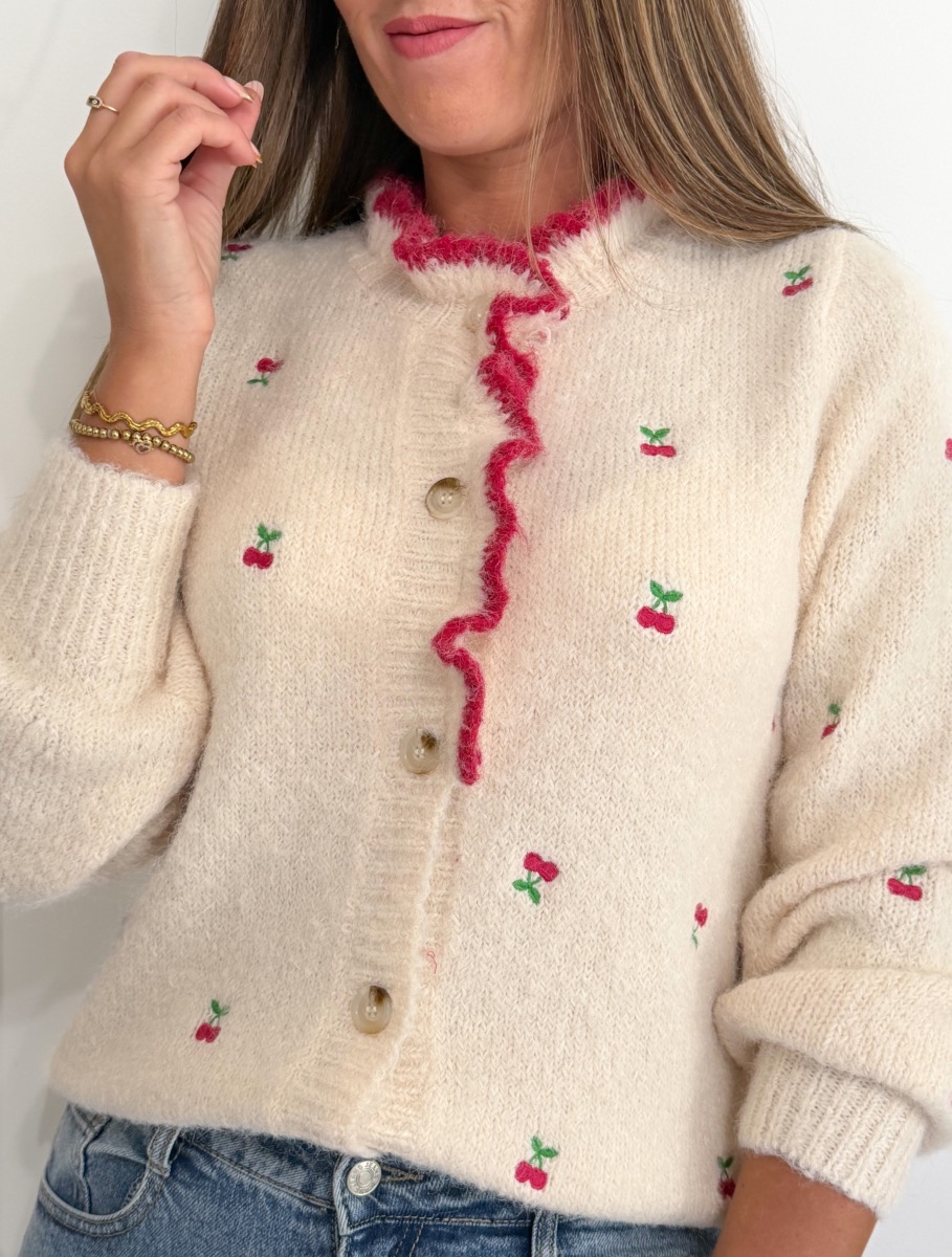 Boutonnière à l’avant avec froufrous et liseré fuchsia.