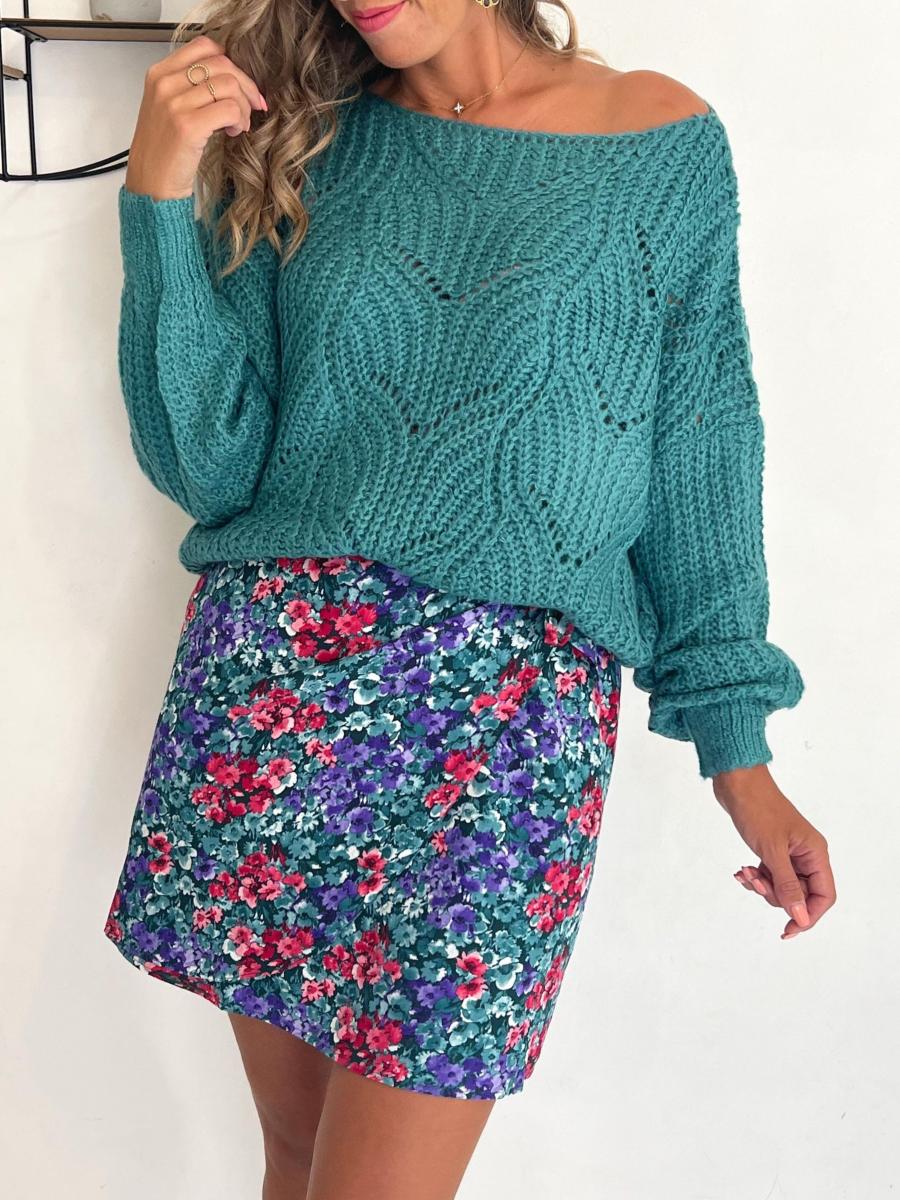 Jupe imprimée fleuri coloris violet, fuchsia, vert.