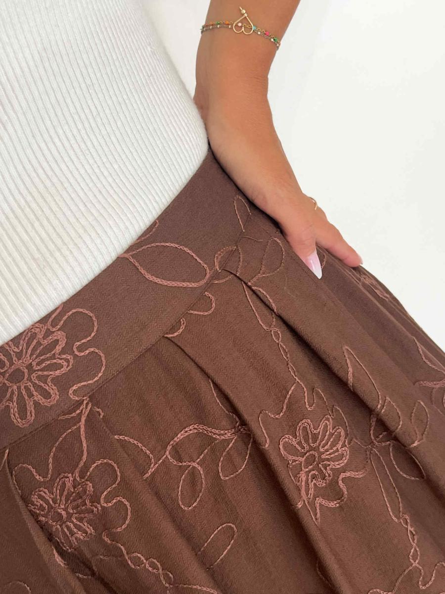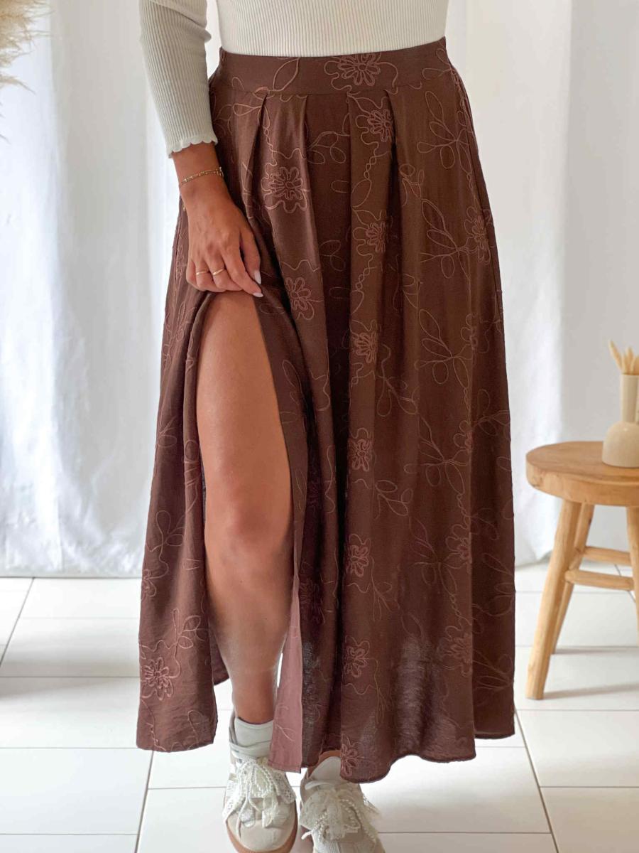 Jupe longue coloris chocolat.