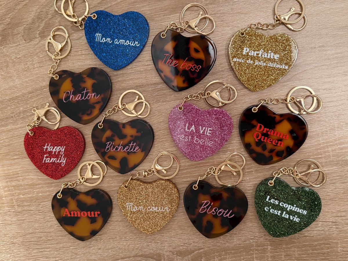 Jolis porte clés miroirs de poches Léopard ou pailleté avec messages.