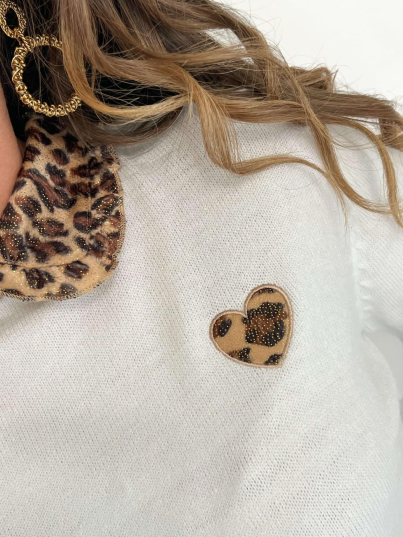 - Col effet chemise imprimé léopard