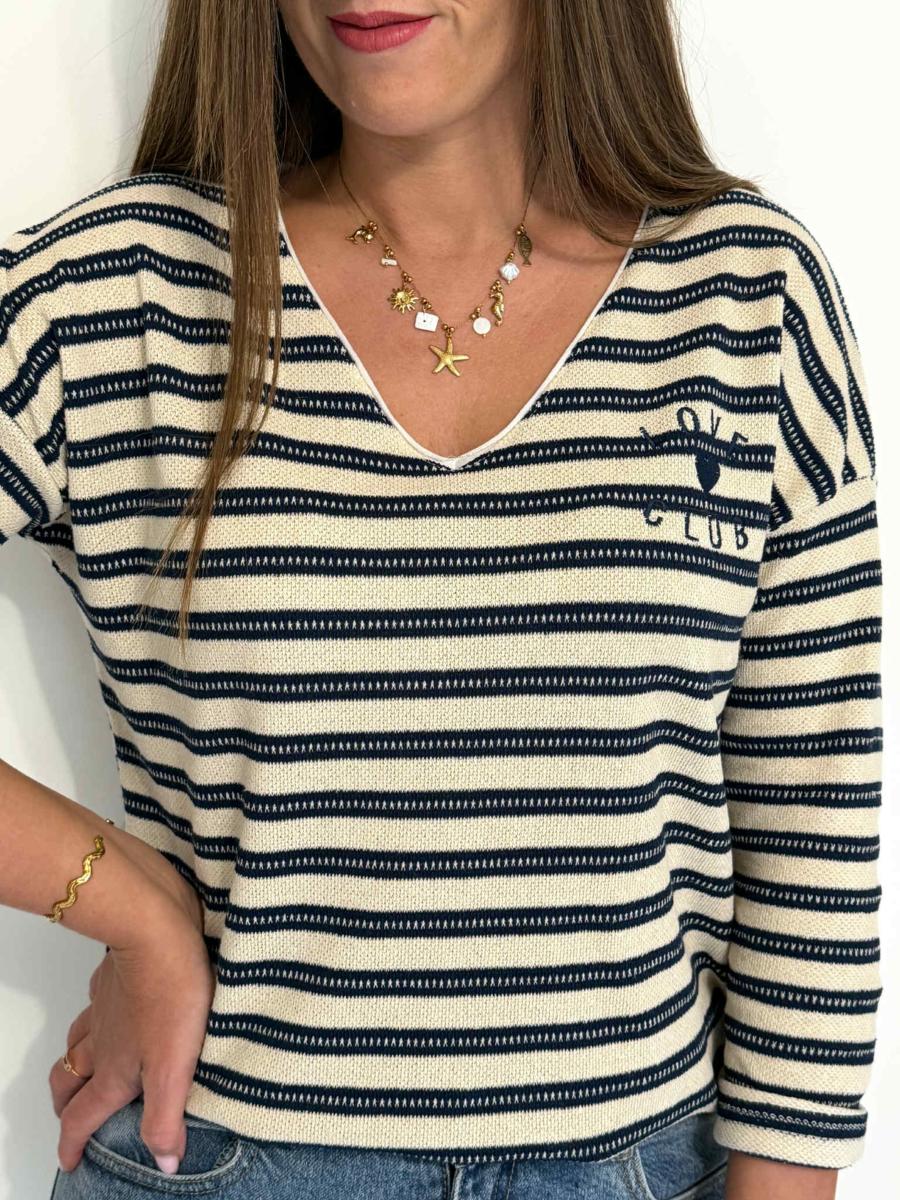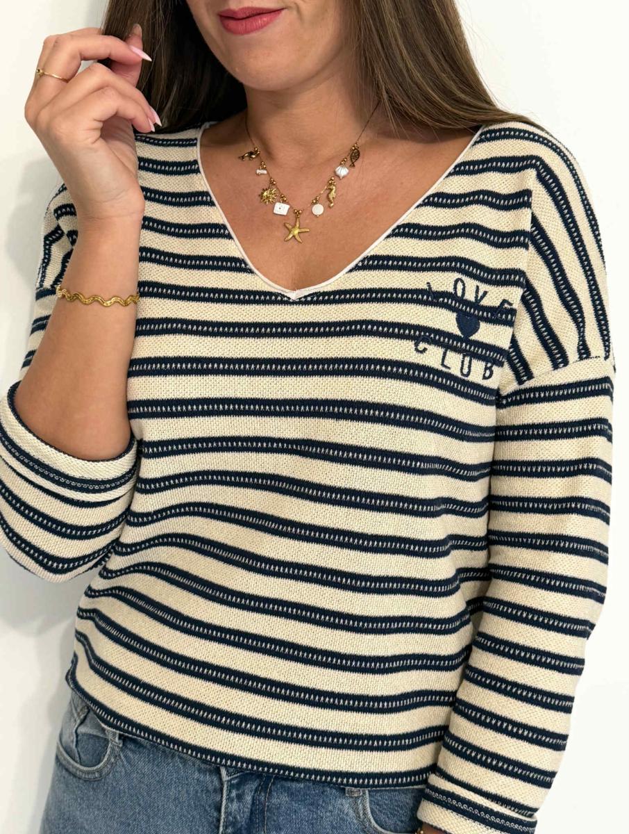Pull à rayures.