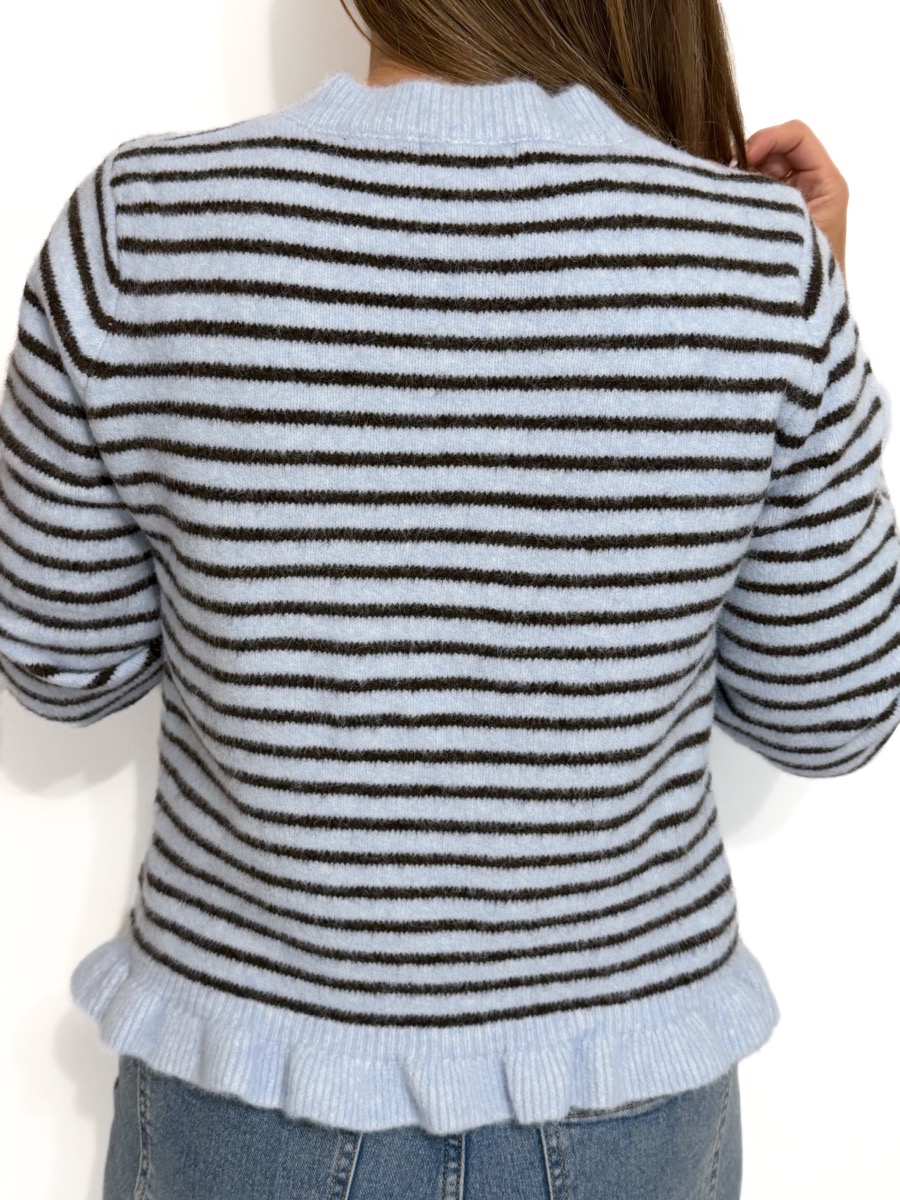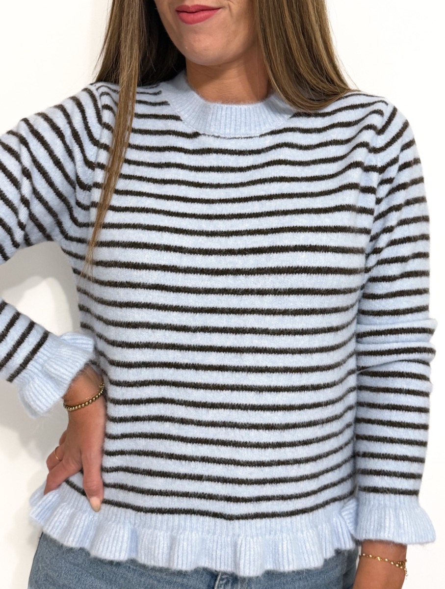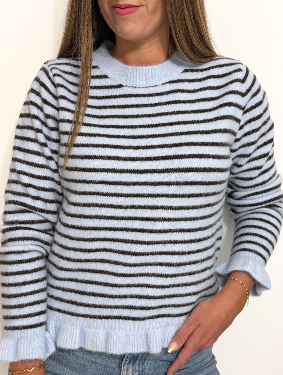Pull rayé coloris bleu et noir.