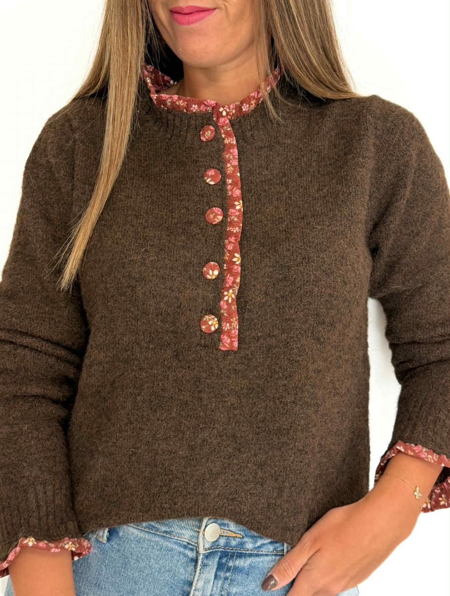Pull coloris chocolat.