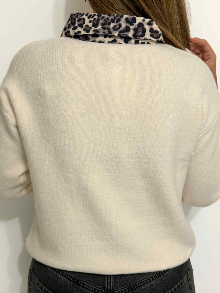 Col, poignets et boutons léopard.