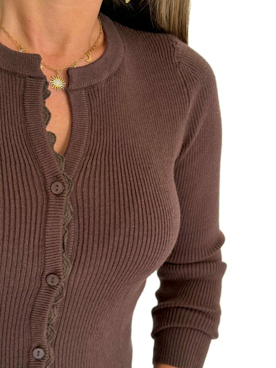 Boutonnière à l'avant ornée d'une fine dentelle.