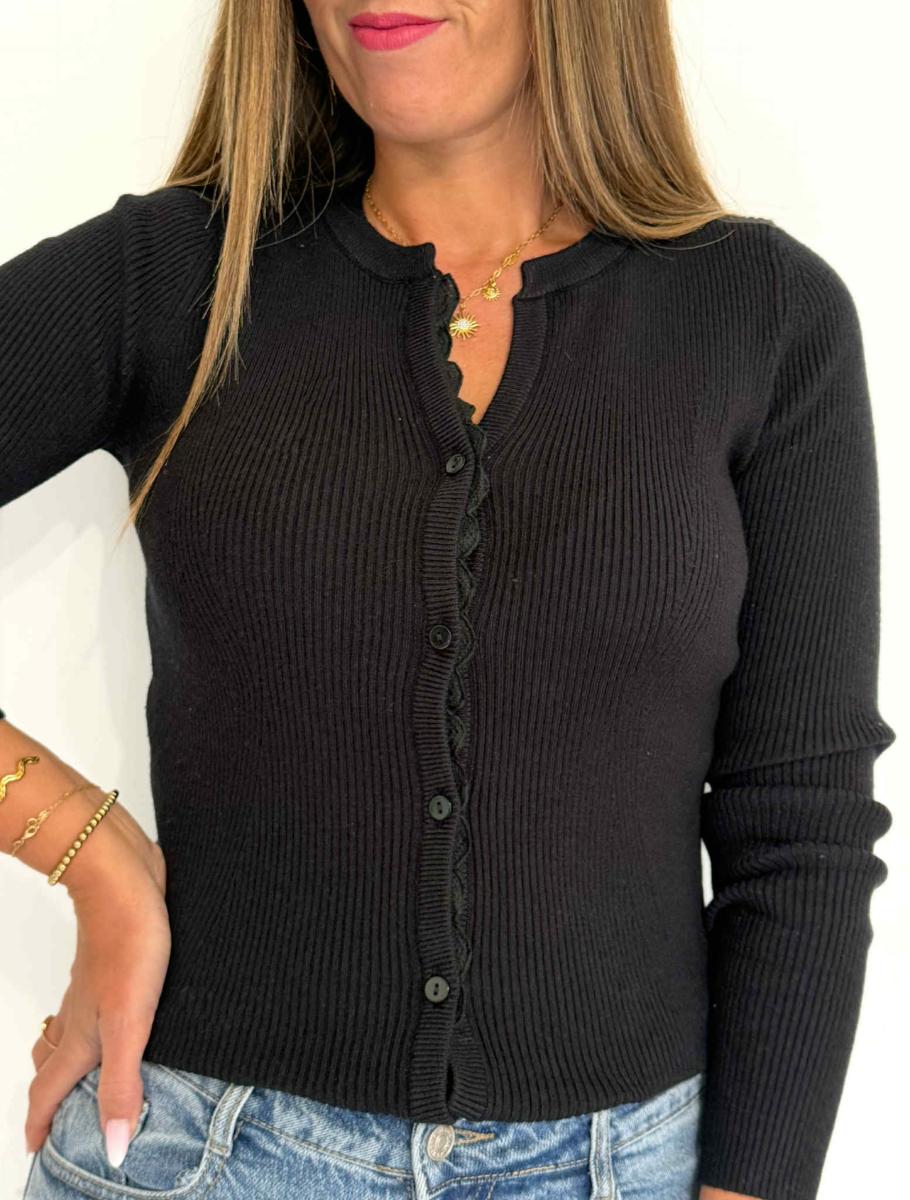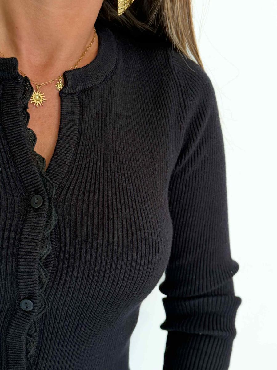 Boutonnière à l'avant ornée d'une fine dentelle.