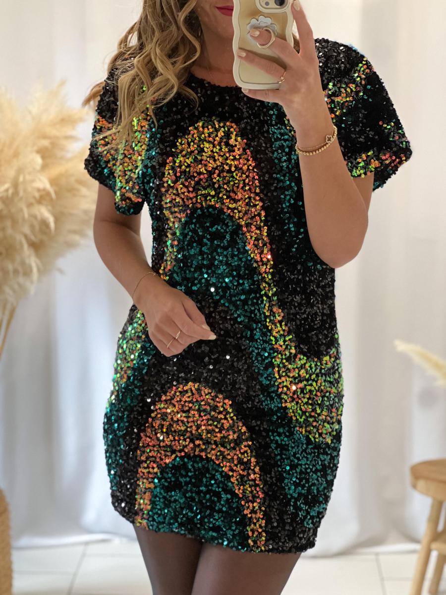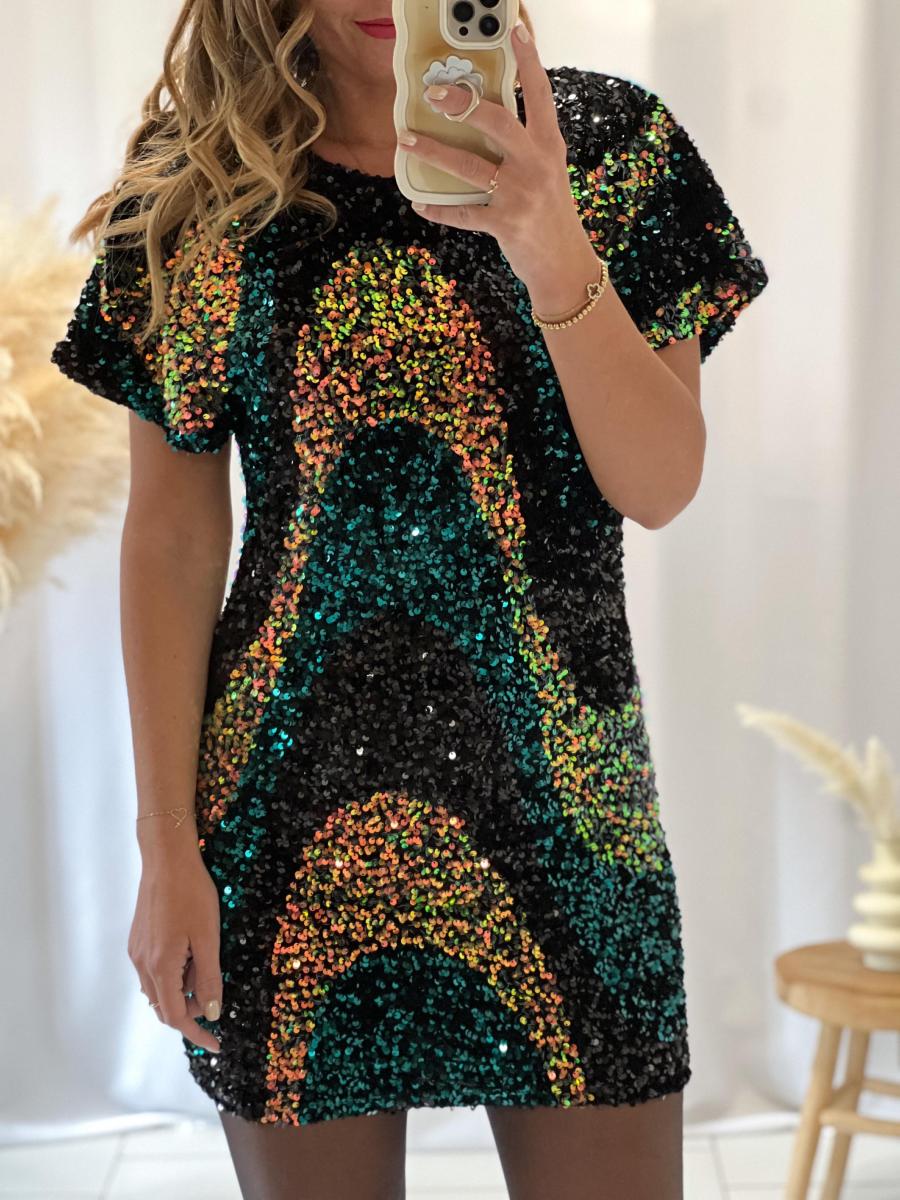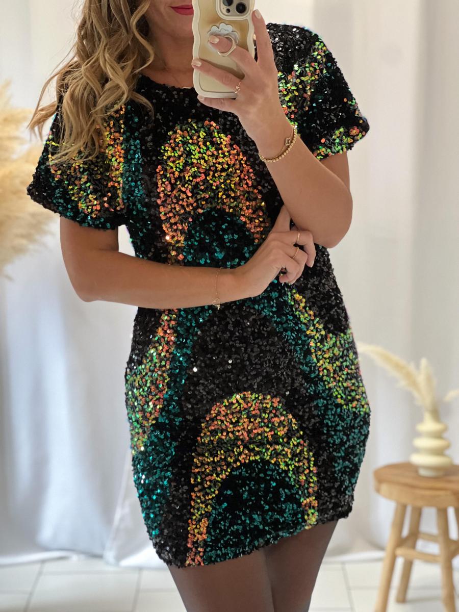 Jolie rose en sequins multicolores.