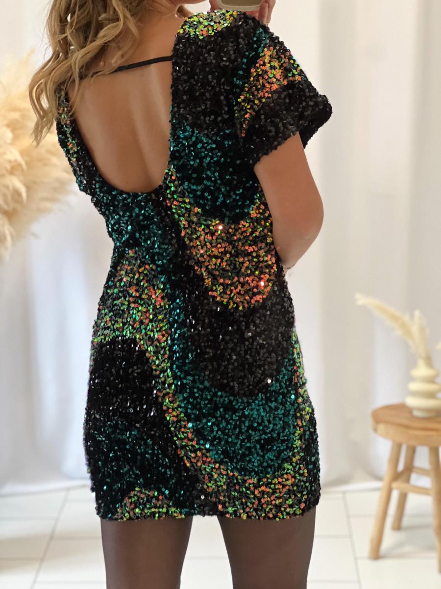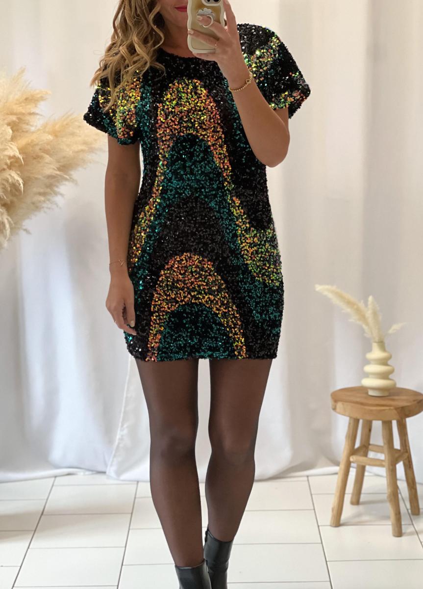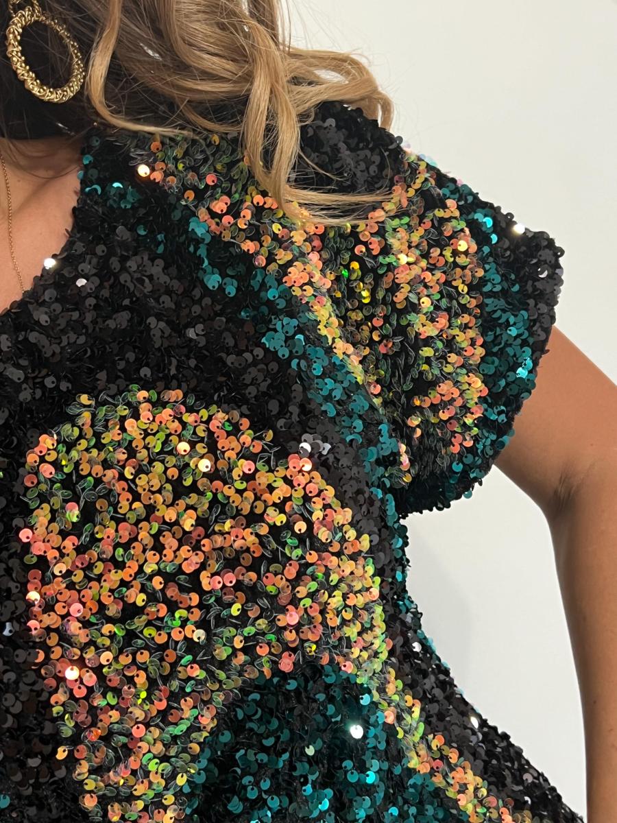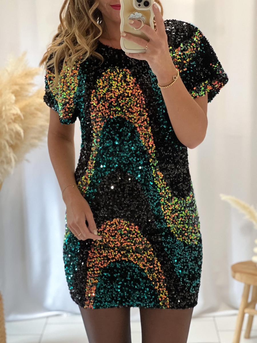 Jolie rose en sequins multicolores.