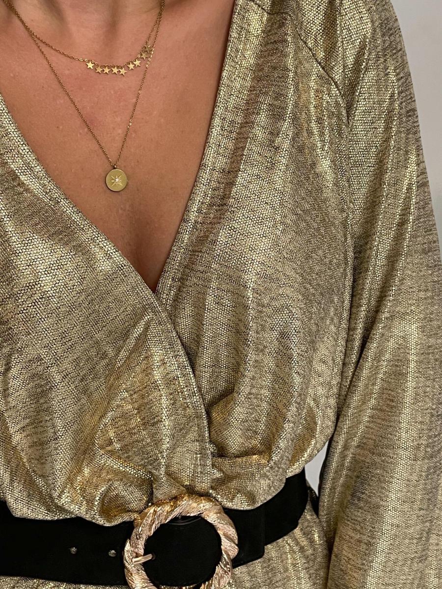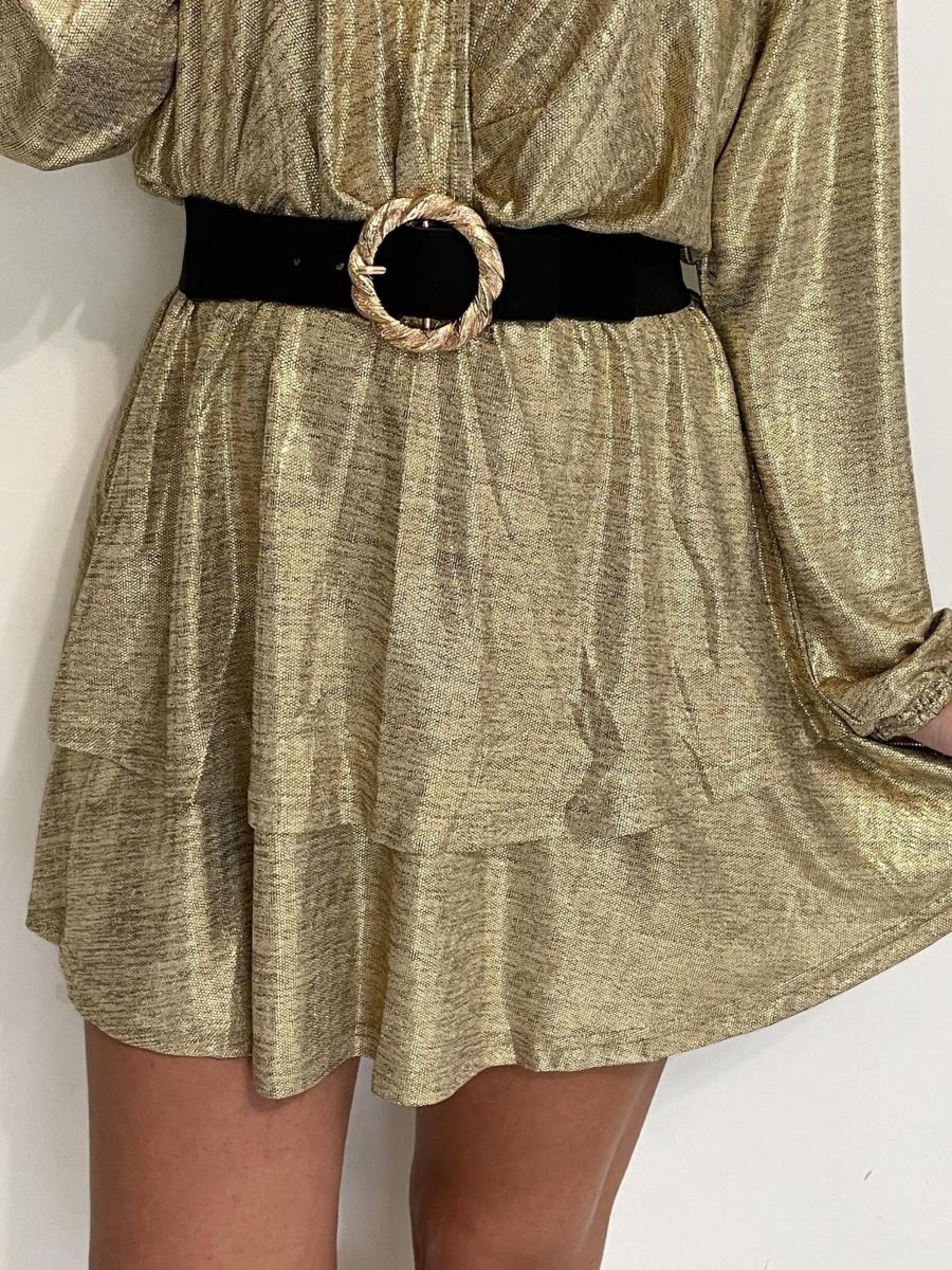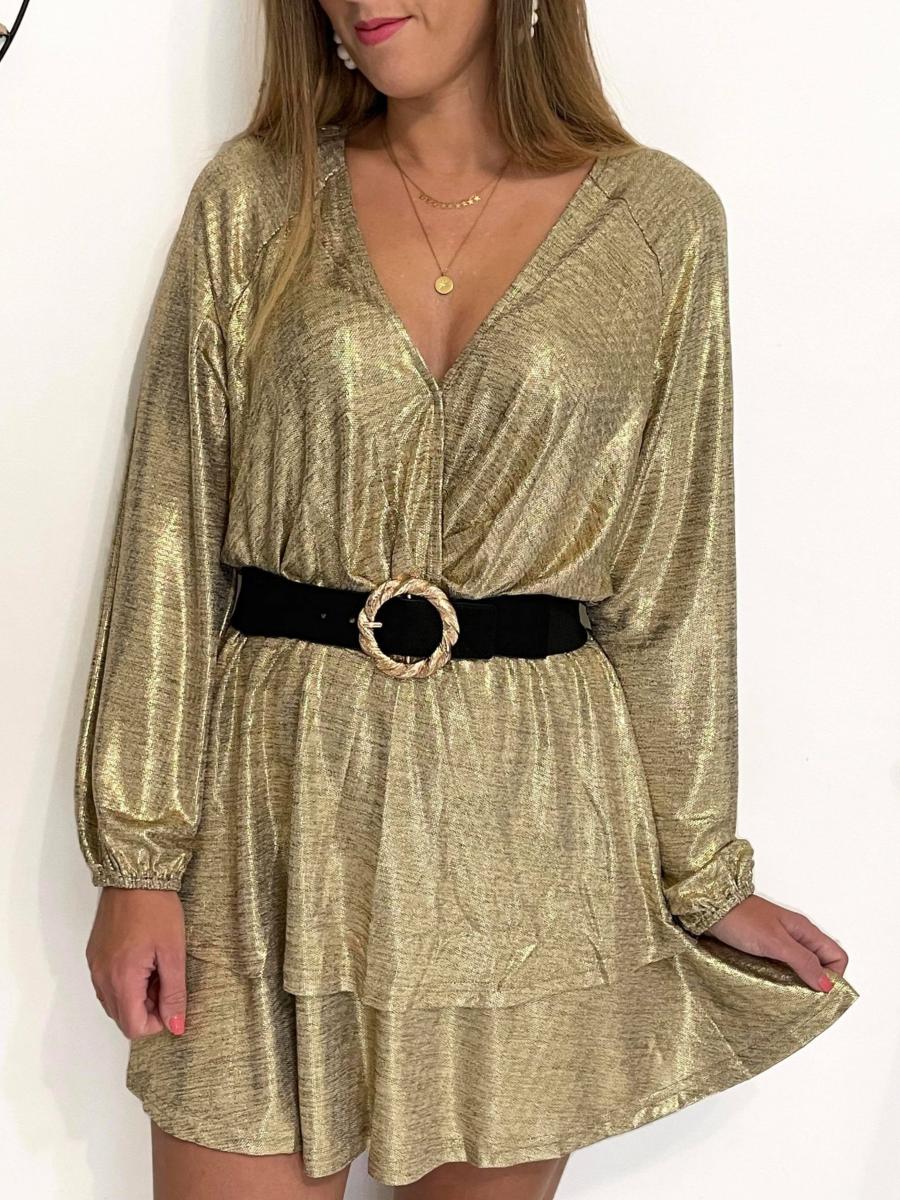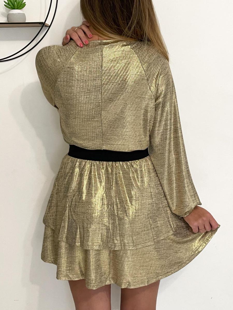 Robe tout en lurex doré.