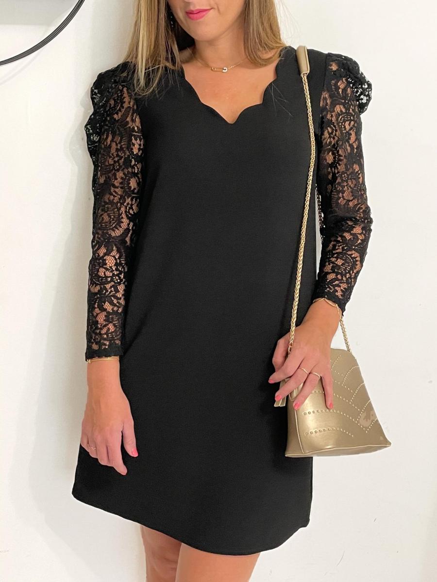 Manches longues en dentelle avec épaules bouffantes.