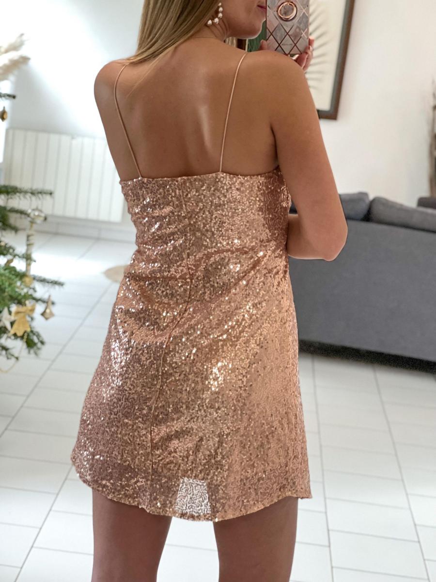 Robe tout en sequins champagne.