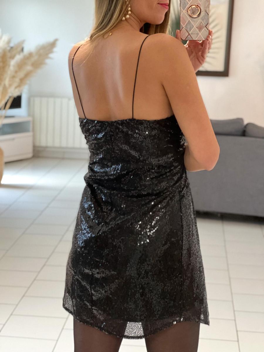 Robe tout en sequins noirs.