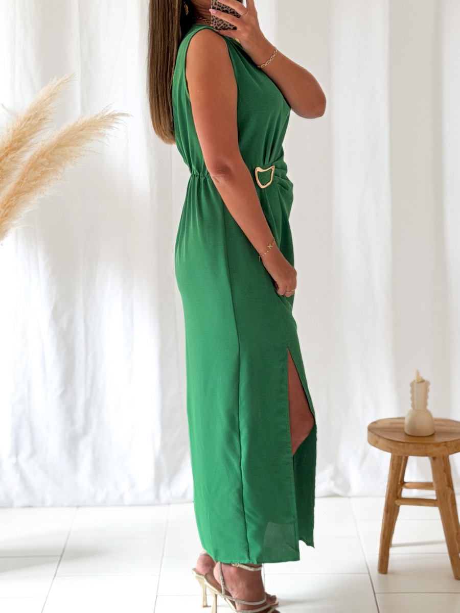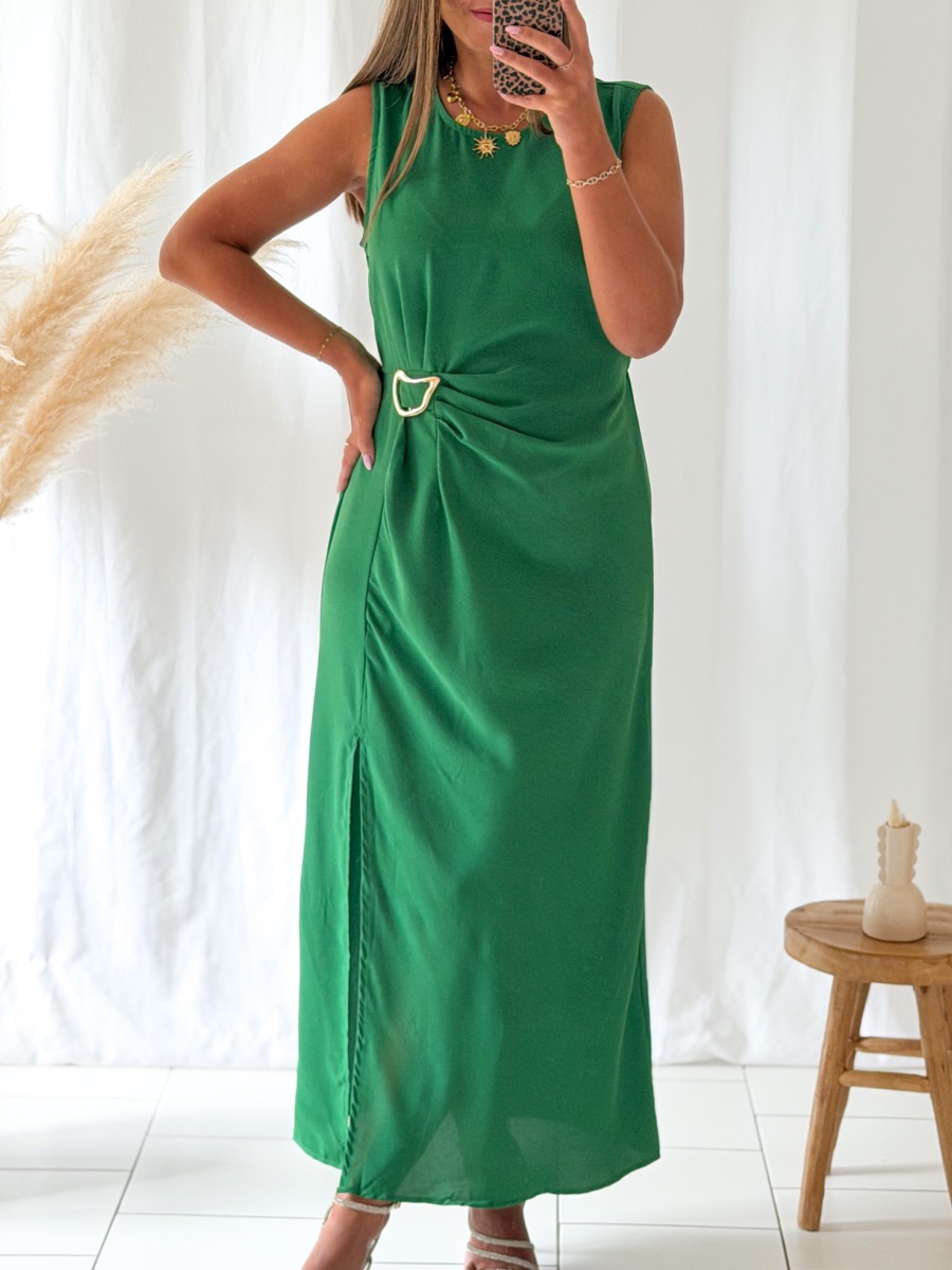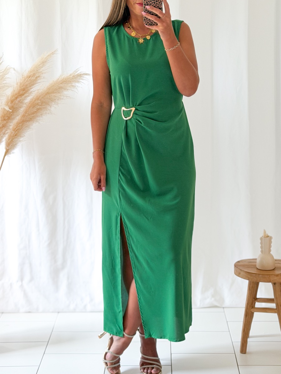 Robe longue coloris vert.