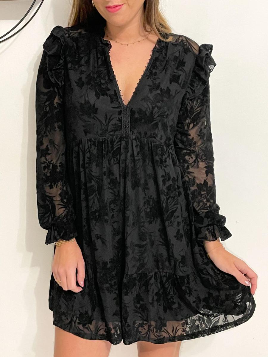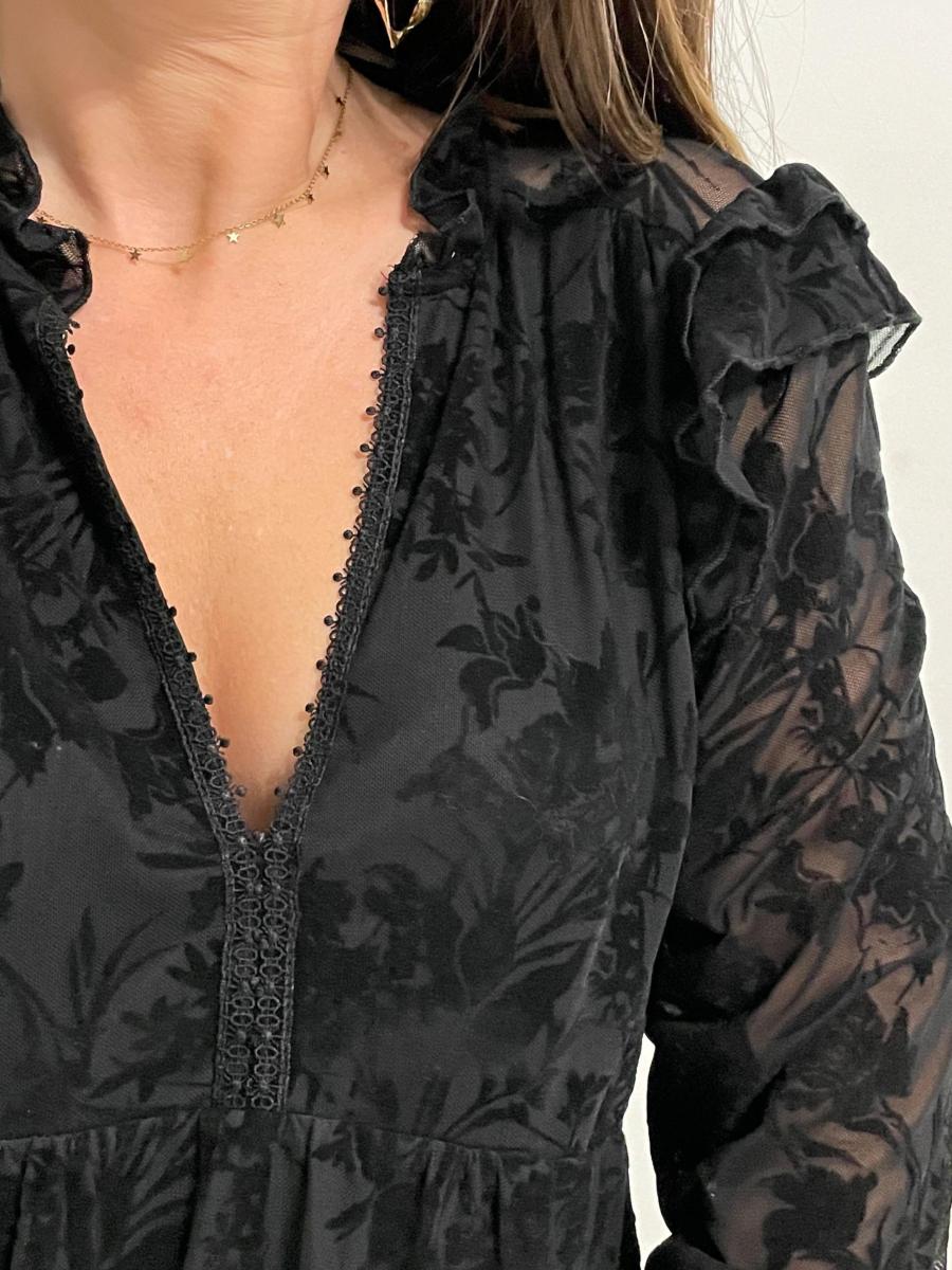 Robe noire avec détails en velours.