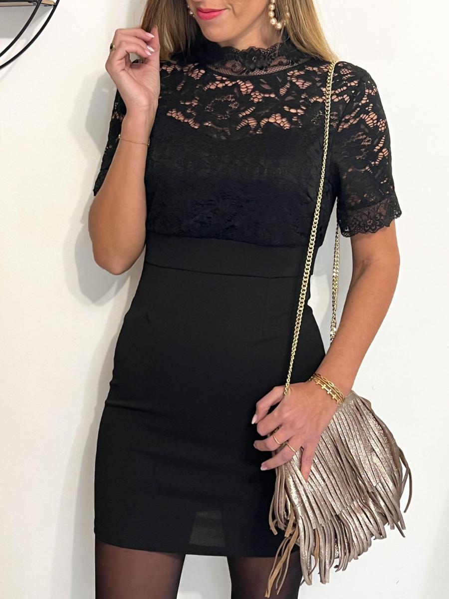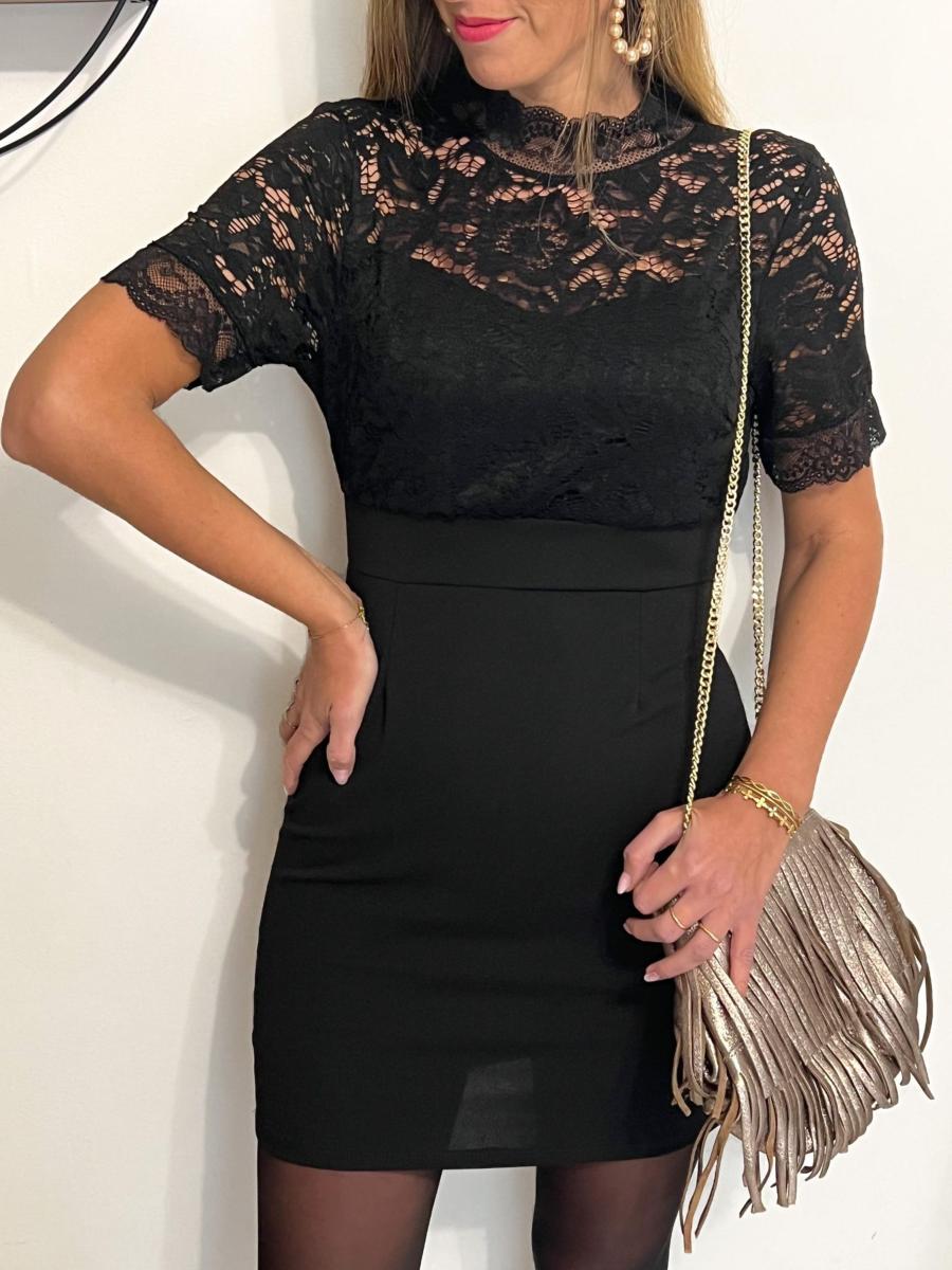 Buste, manches et dos tout en dentelle.