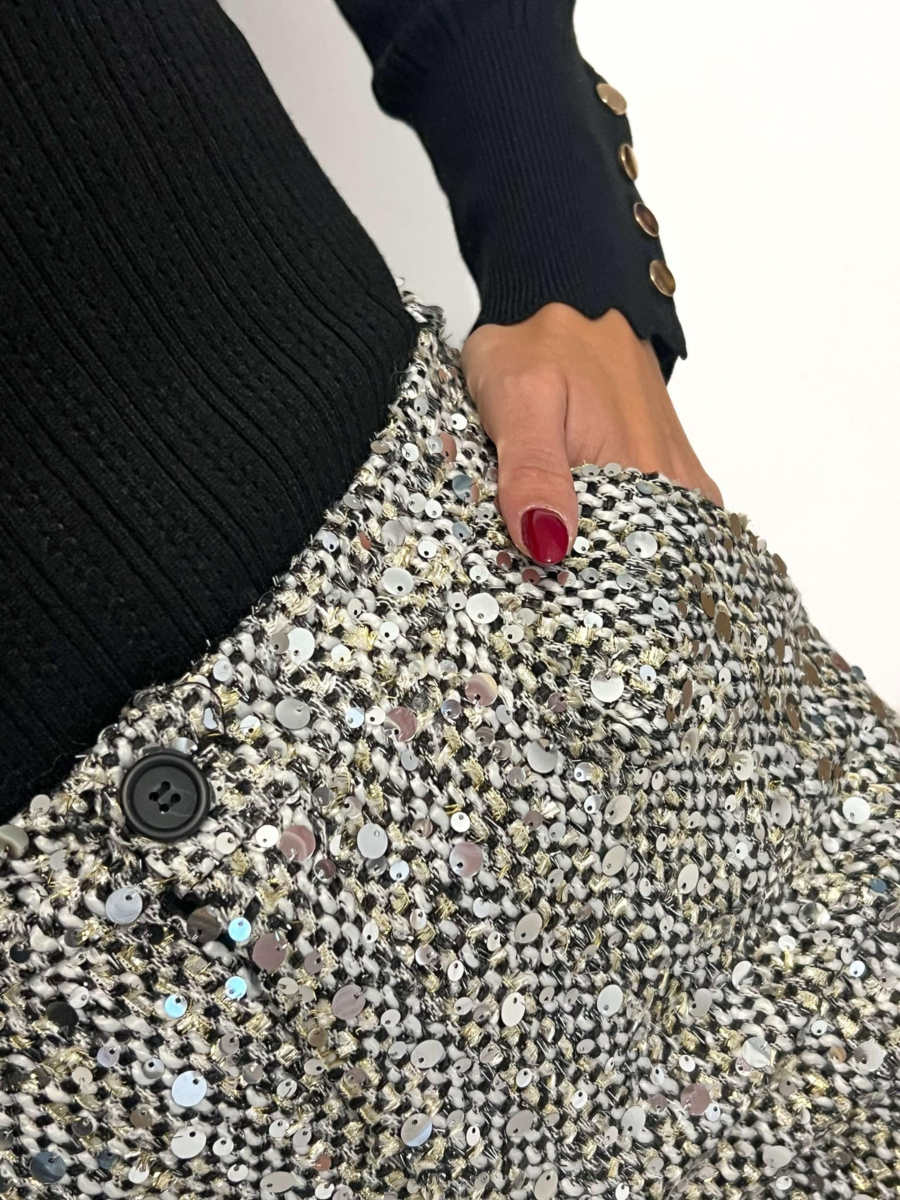 - Short gris en tweed à sequins