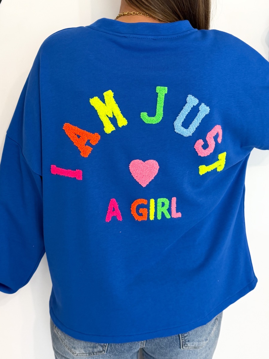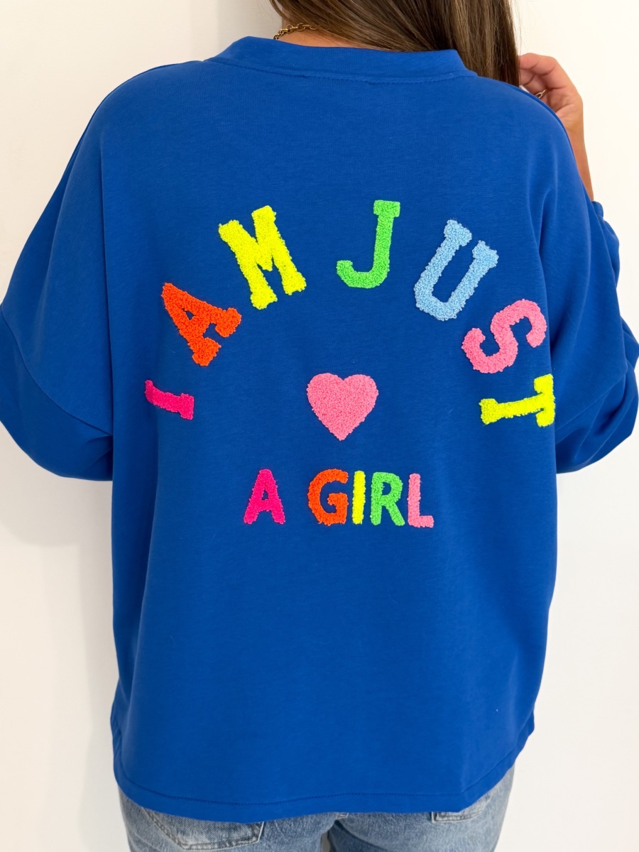 Inscription "I’m just a girl" colorée au dos.