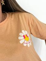 Fleur imprimée au dos et sur la poitrine avec inscription.