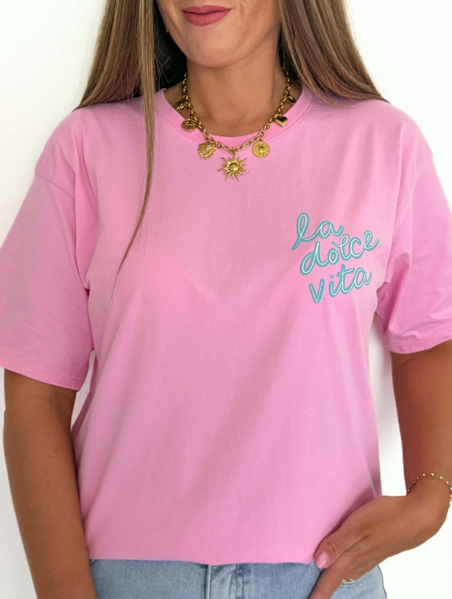 Tee shirt coloris rose.